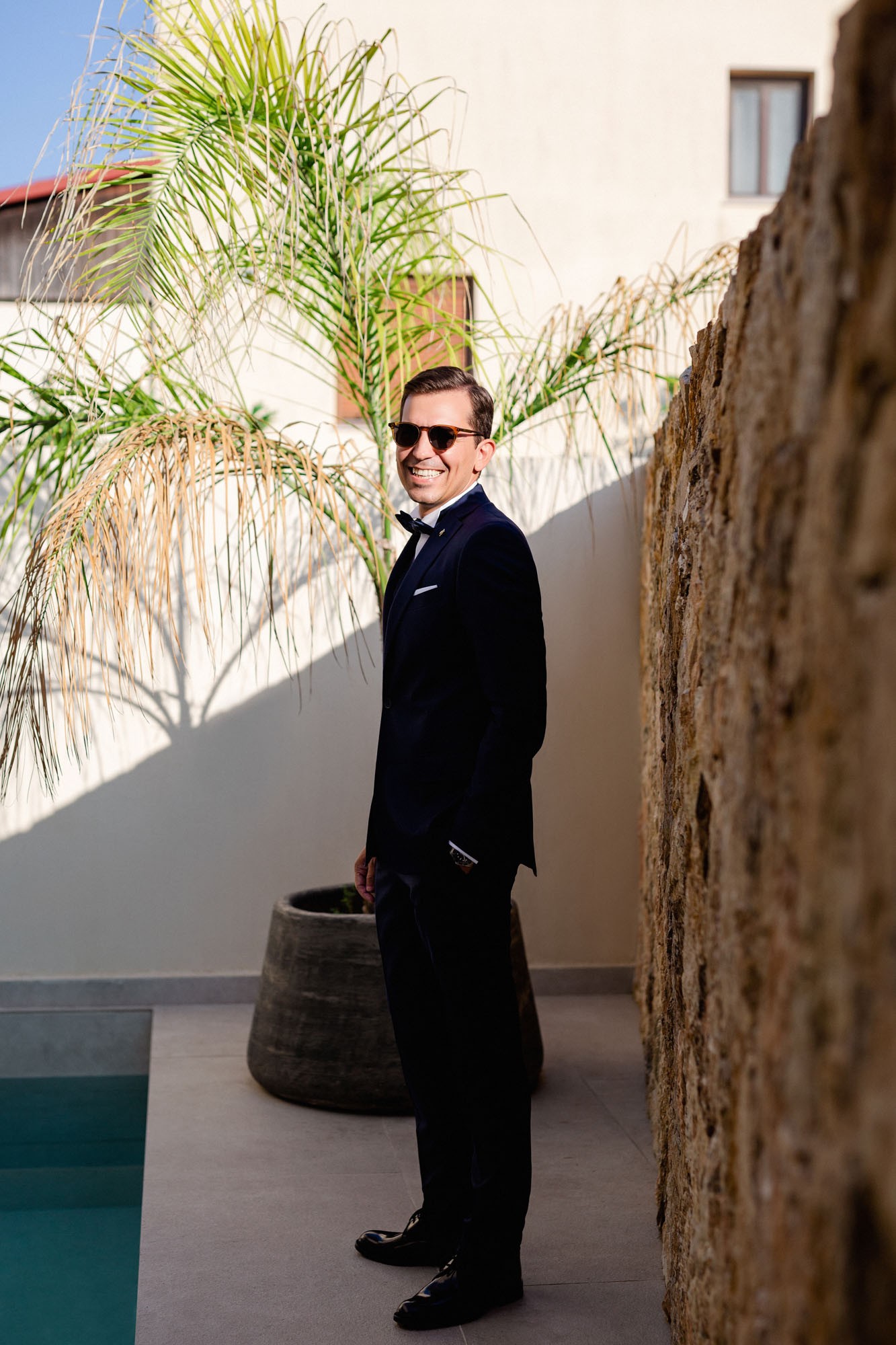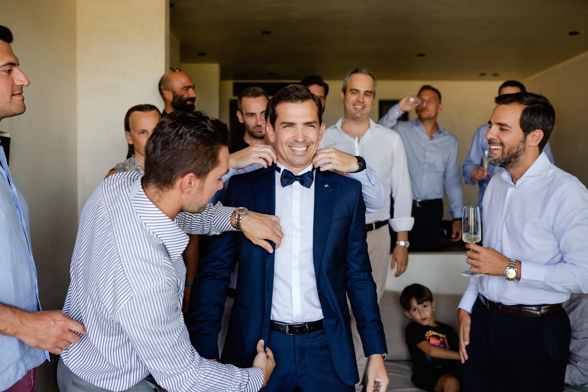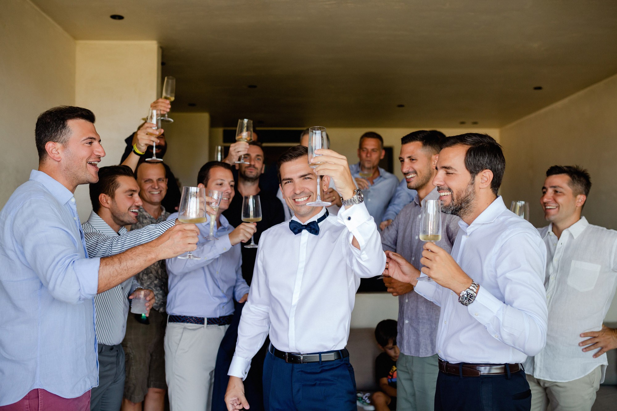 Το Sever Rocks, ένας από τους πιο όμορφους χώρους της περιοχής, φιλοξένησε τις προετοιμασίες του ζευγαριού. Εκεί, ο γαμπρός, Μάριος, απόλαυσε την παρέα των φίλων του κολυμπώντας στην πισίνα πριν αρχίσει να ετοιμάζεται. Οι φωτογραφίες γάμου από αυτές τις στιγμές είναι γεμάτες χαρά και διασκέδαση, αποτυπώνοντας την ανυπομονησία για τη μεγάλη στιγμή.
