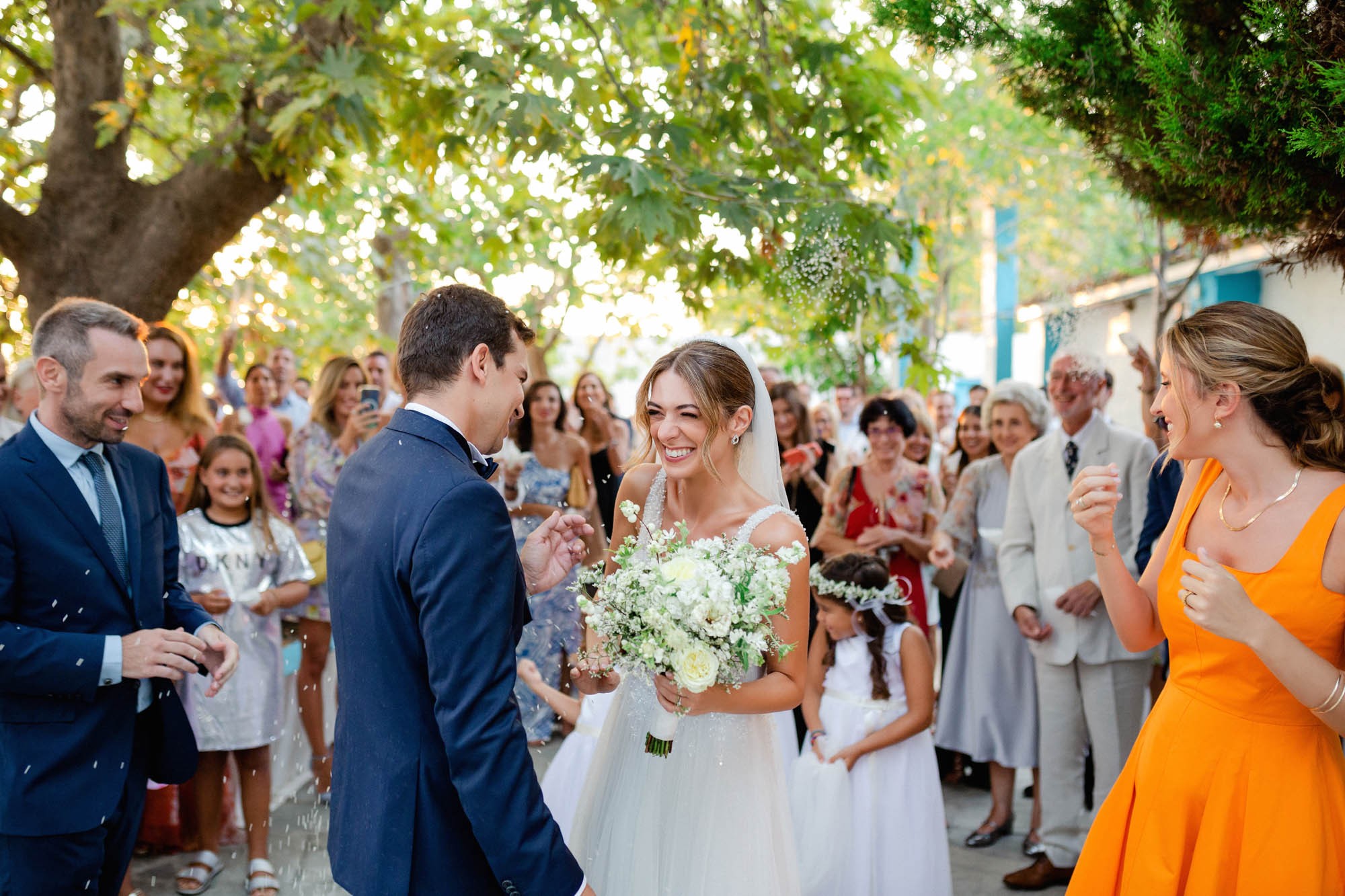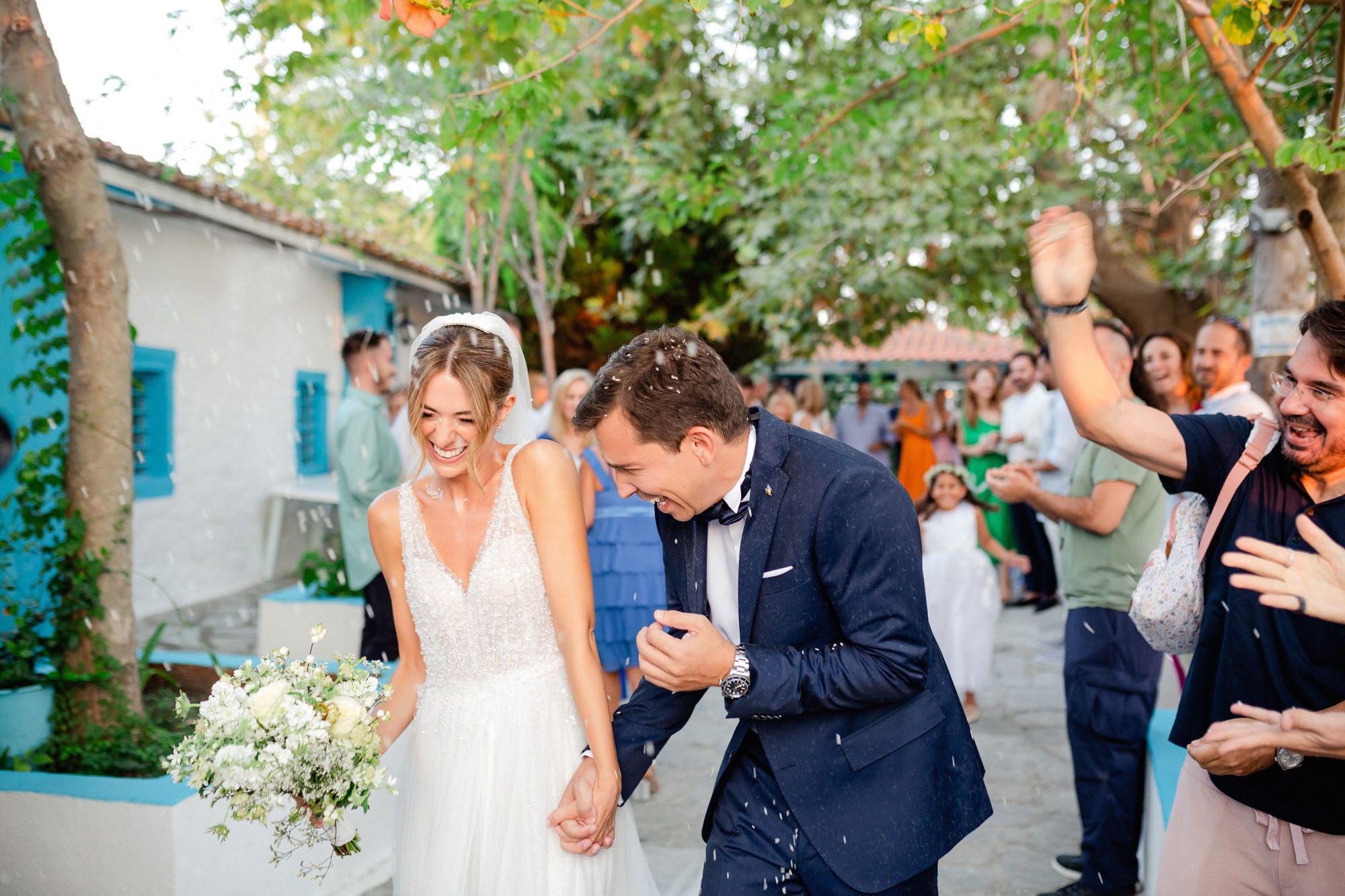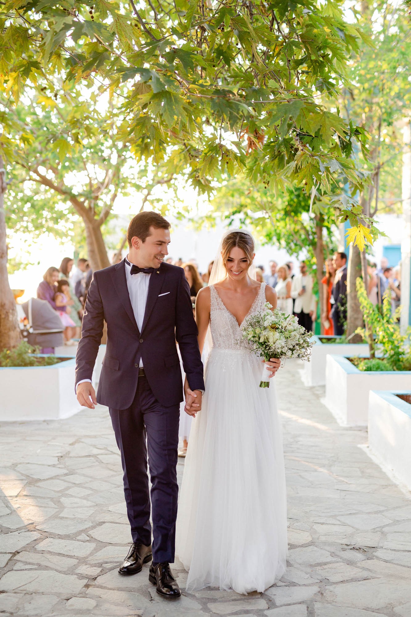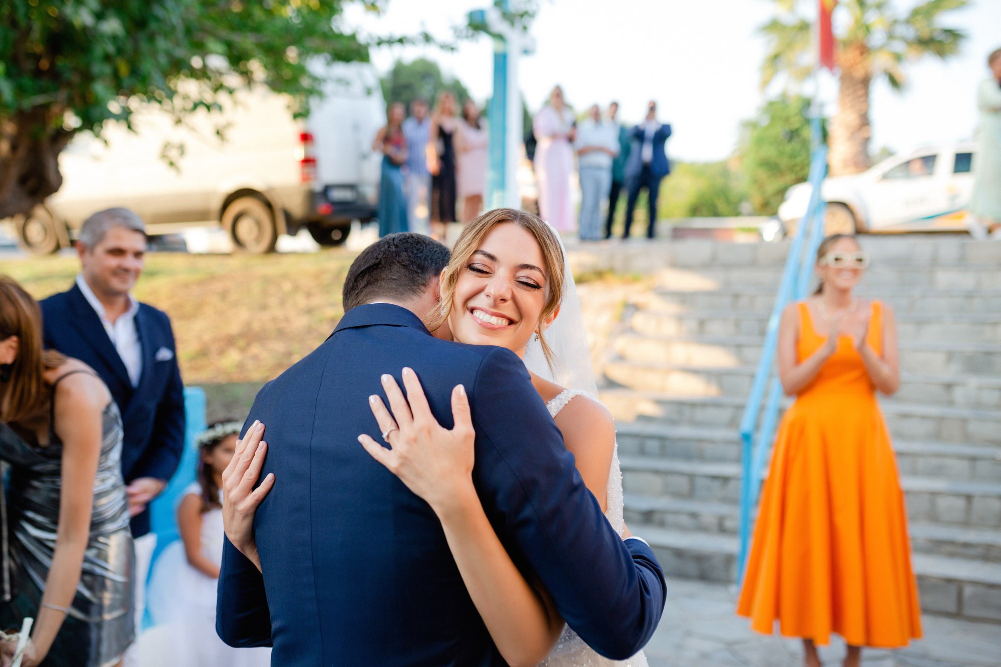 Οι φωτογραφίες γάμου από την τελετή αντανακλούν τη μαγεία της στιγμής και την ευτυχία του ζευγαριού. Η ανέμελη διάθεση συνεχίστηκε και στη δεξίωση στο Navagos Beach Bar, όπου ένας ταλαντούχος DJ ανέλαβε να κρατήσει τη διάθεση στα ύψη. Οι καλεσμένοι χόρευαν και γιόρταζαν μέχρι τις πρώτες πρωινές ώρες, με τον στολισμό να είναι ιδιαίτερα εντυπωσιακός, με πανέμορφα λουλούδια και κεριά να δημιουργούν την τέλεια ατμόσφαιρα.