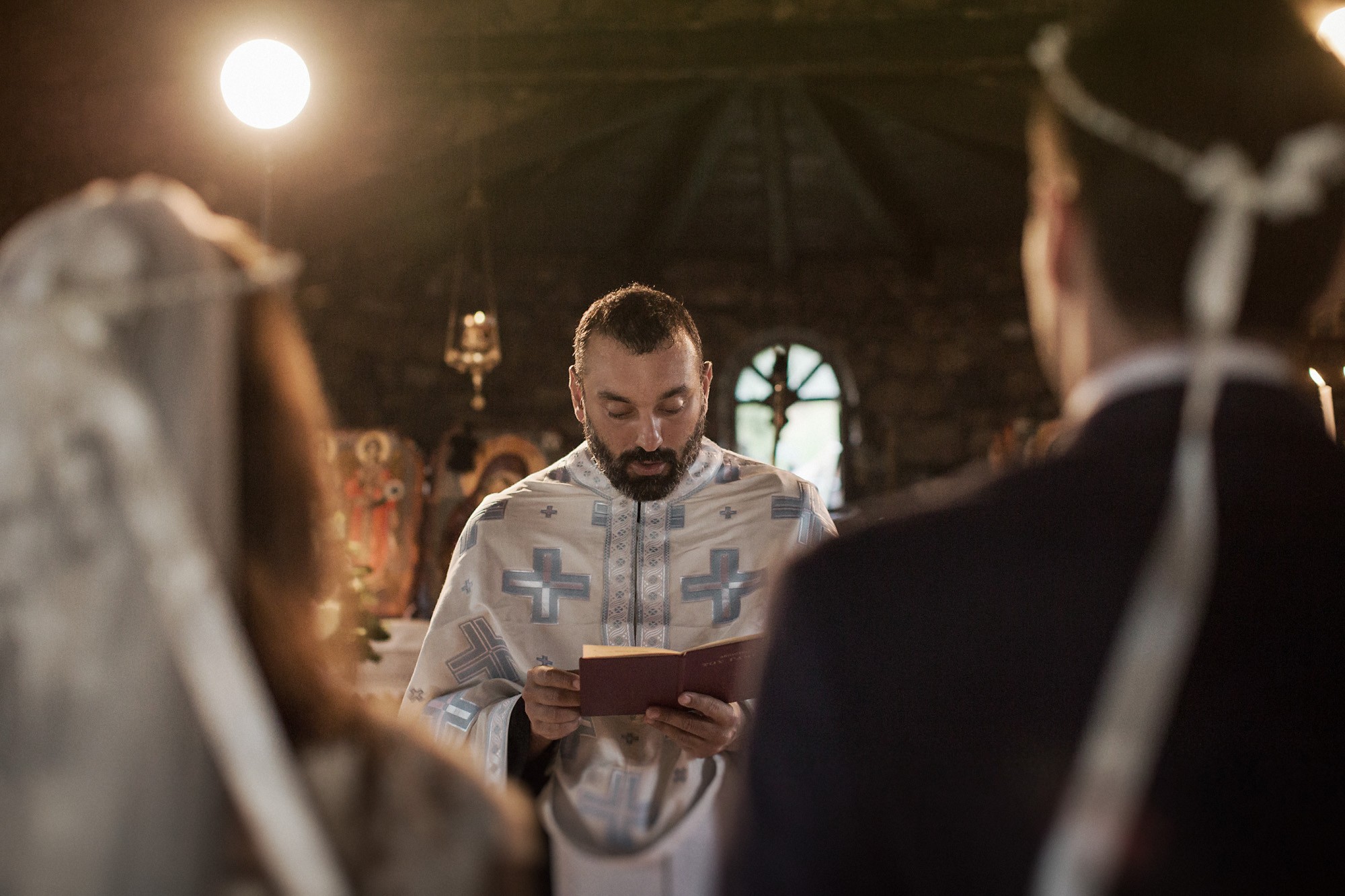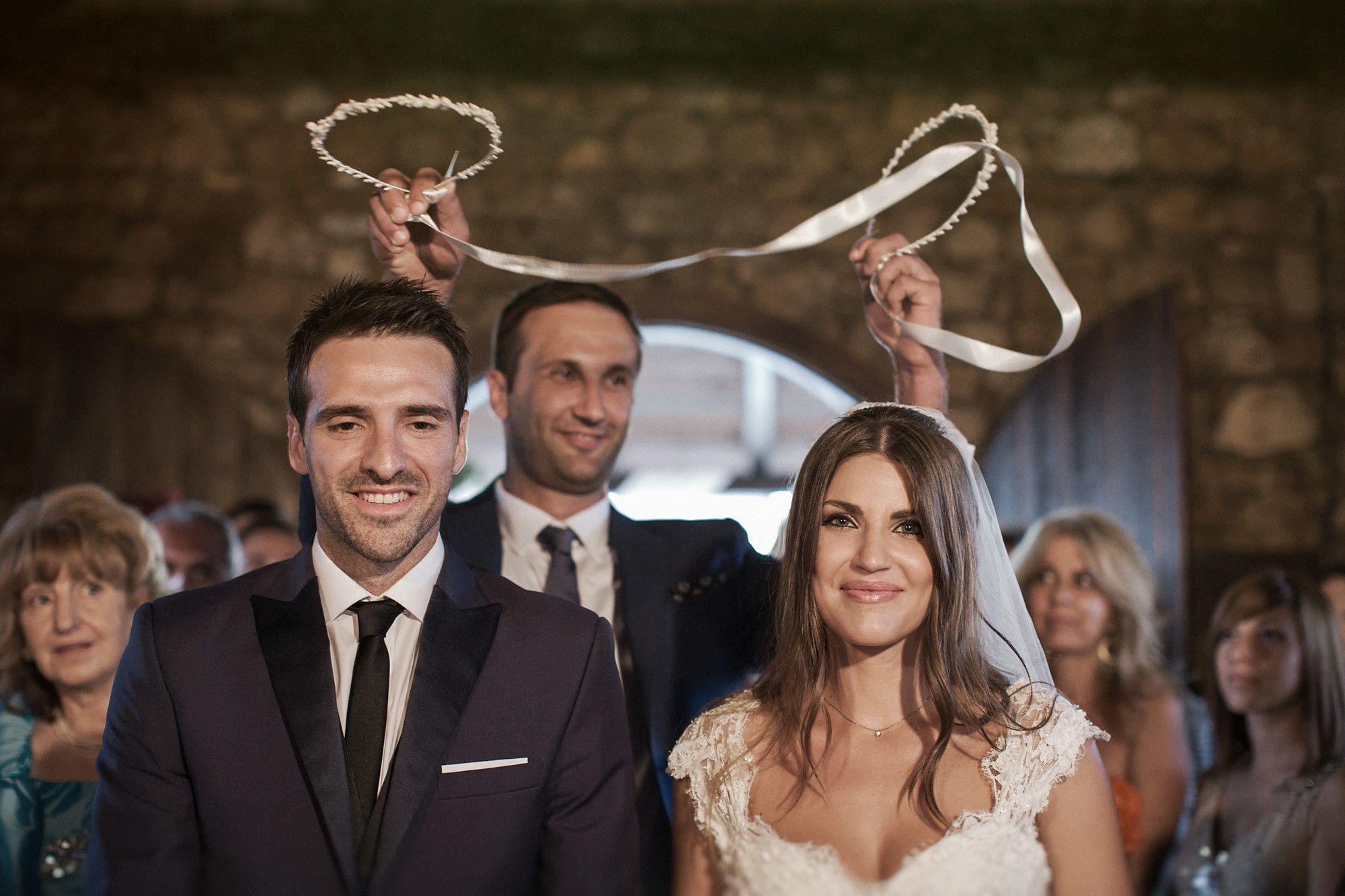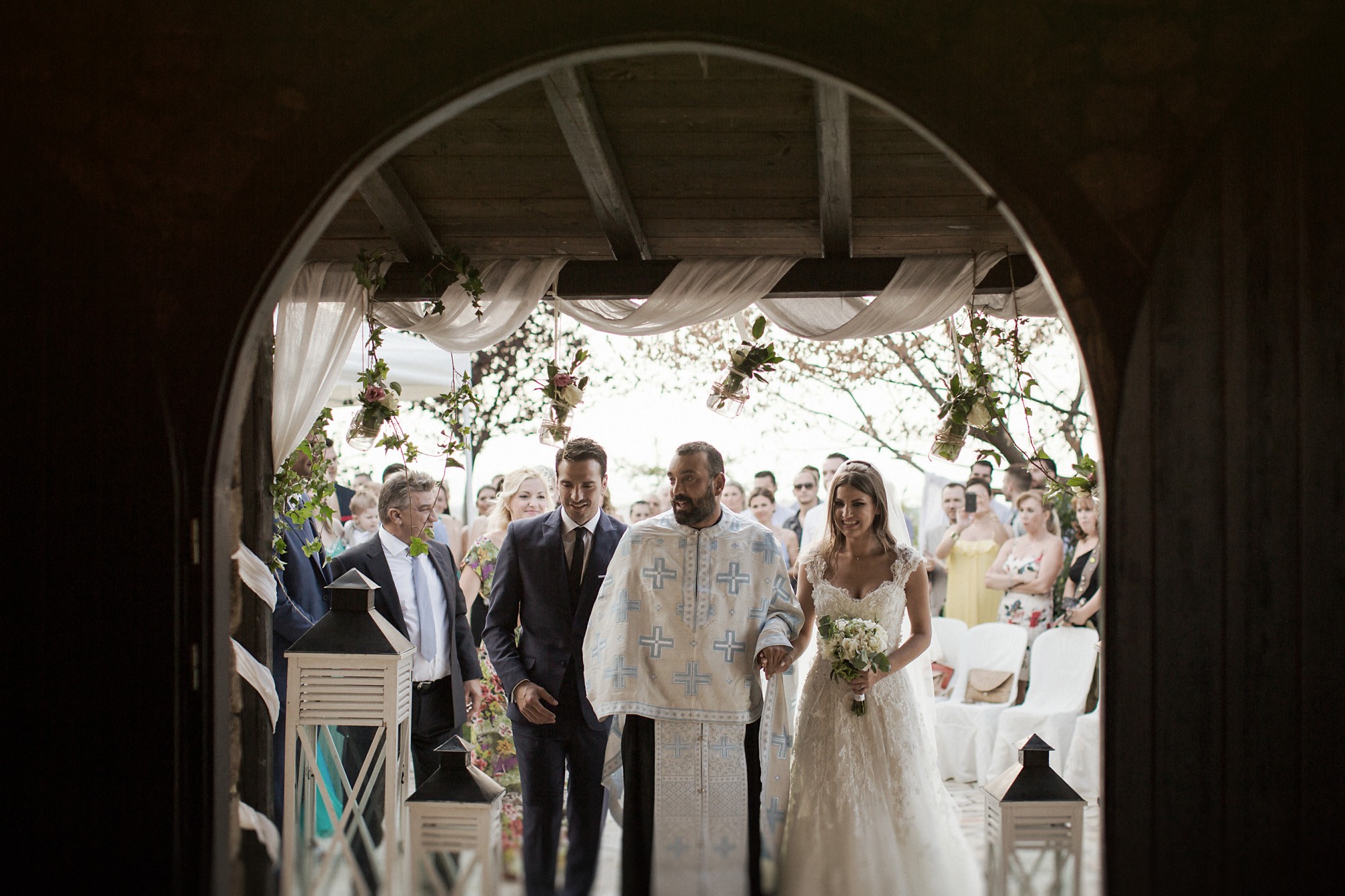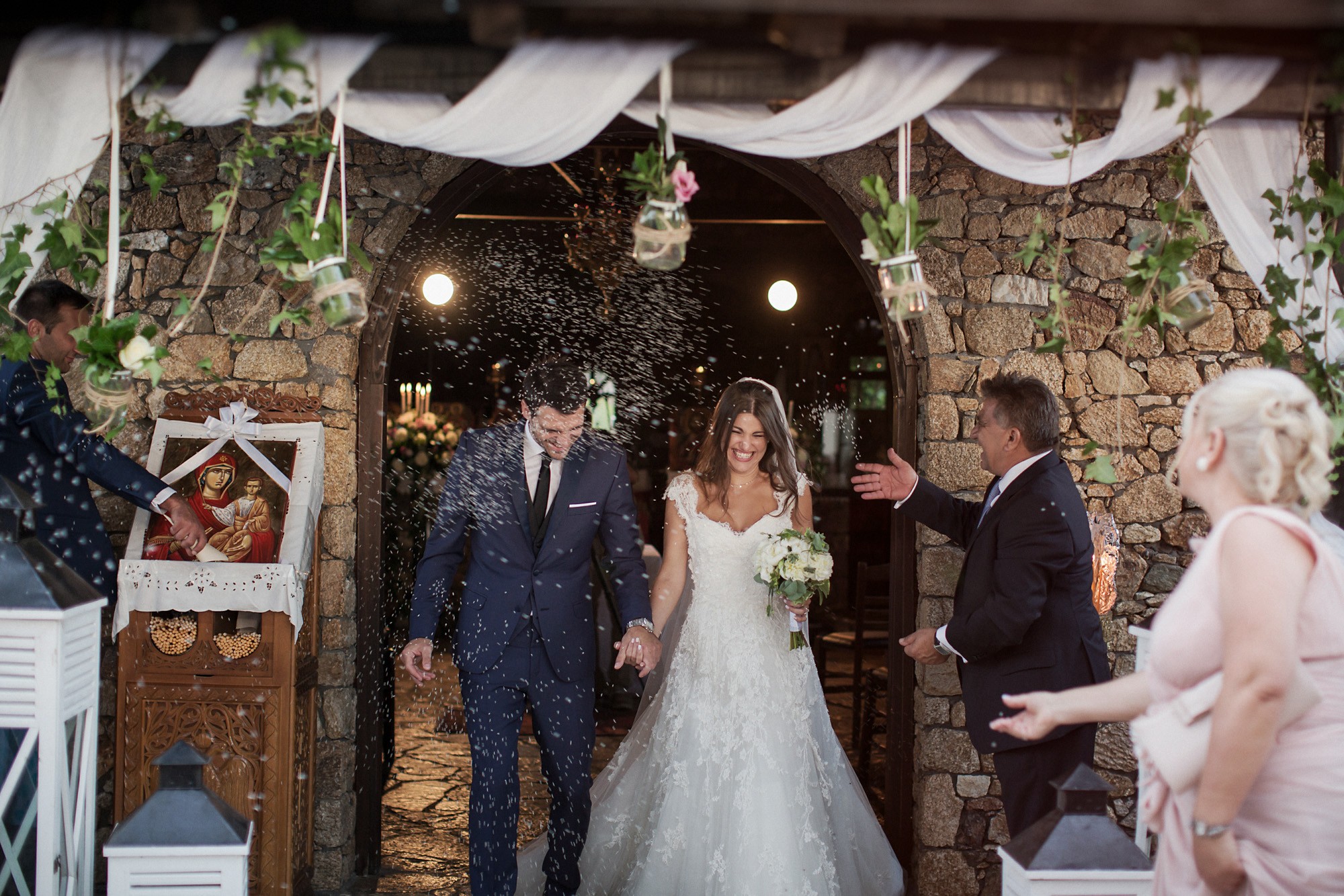 Η πιο έντονα συναισθηματικά φορτισμένη στιγμή της ημέρας, ήταν όταν το ζευγάρι συναντήθηκε, μετά από μεγάλη προσμονή, στην εκκλησία. Η συγκίνηση της νύφης και η ευτυχία του γαμπρού κατέκλυσαν την ατμόσφαιρα και αποτυπώθηκαν στην φωτογραφία γάμου με τρόπο μοναδικό. Ο εξαιρετικός στολισμός του προαύλιου χώρου τράβηξε τα βλέμματα χάρη στον απίστευτα ρομαντικό χαρακτήρα του, με το λευκό χρώμα να κυριαρχεί στα άνθη και τα γαμήλια στολίδια, καθιστώντας τον ιδανικό για την φωτογράφιση γάμου.