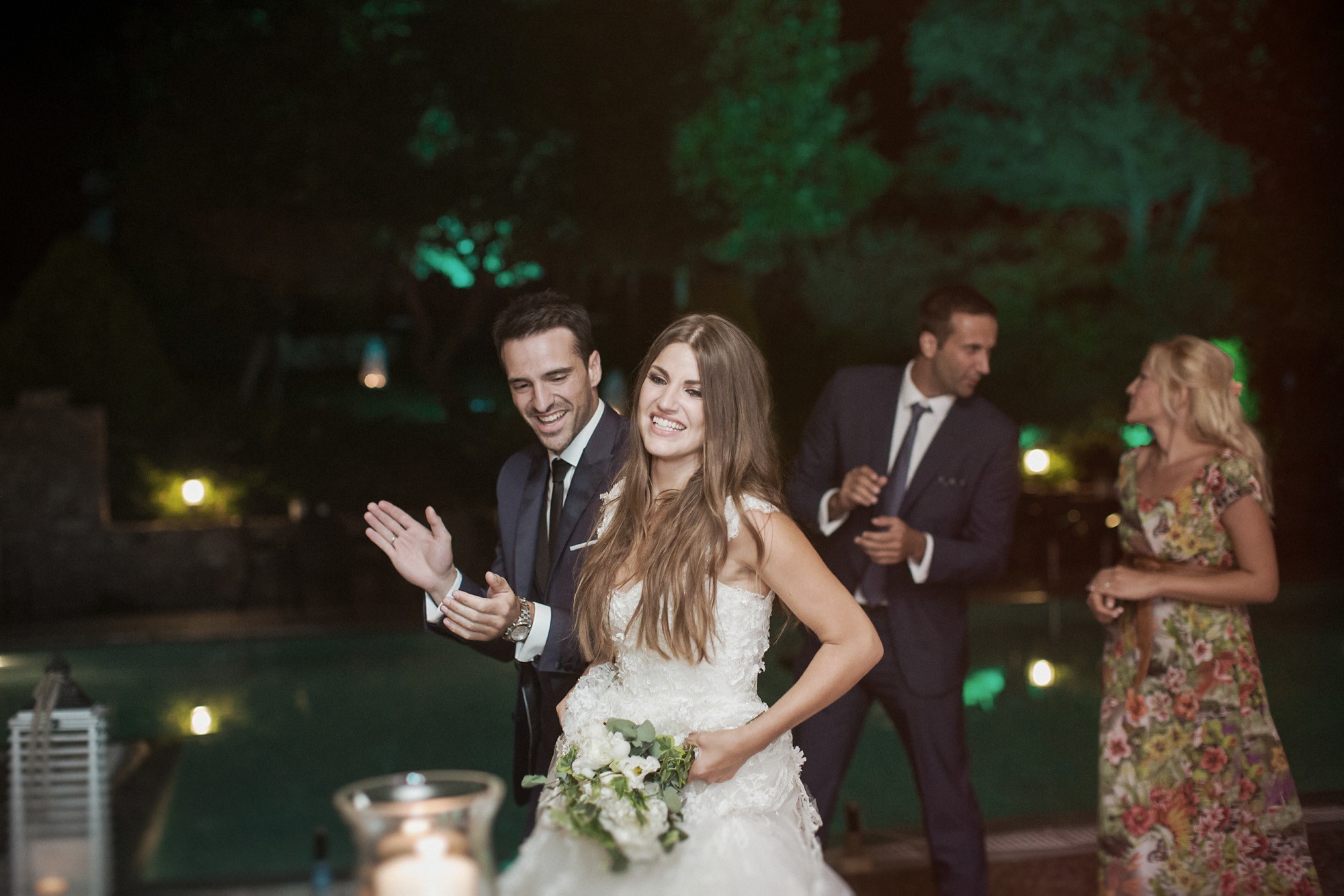 Η δεξίωση διενεργήθηκε, όπως και το μυστήριο, στο Κτήμα Λίκνο, με εξαιρετικά επιμελημένη διακόσμηση και ρομαντική ατμόσφαιρα δίπλα από την πισίνα. Η είσοδος του ζεύγους αναγγέλθηκε με πυροτεχνήματα που στόλισαν τον νυχτερινό ουρανό και κατέπληξαν τους καλεσμένους. Η βραδιά εξελίχθηκε σε ένα απόλυτα δυναμικό πάρτι που άφησε κάθε παρευρισκόμενο με υπέροχες αναμνήσεις και ιστορίες να διηγείται.