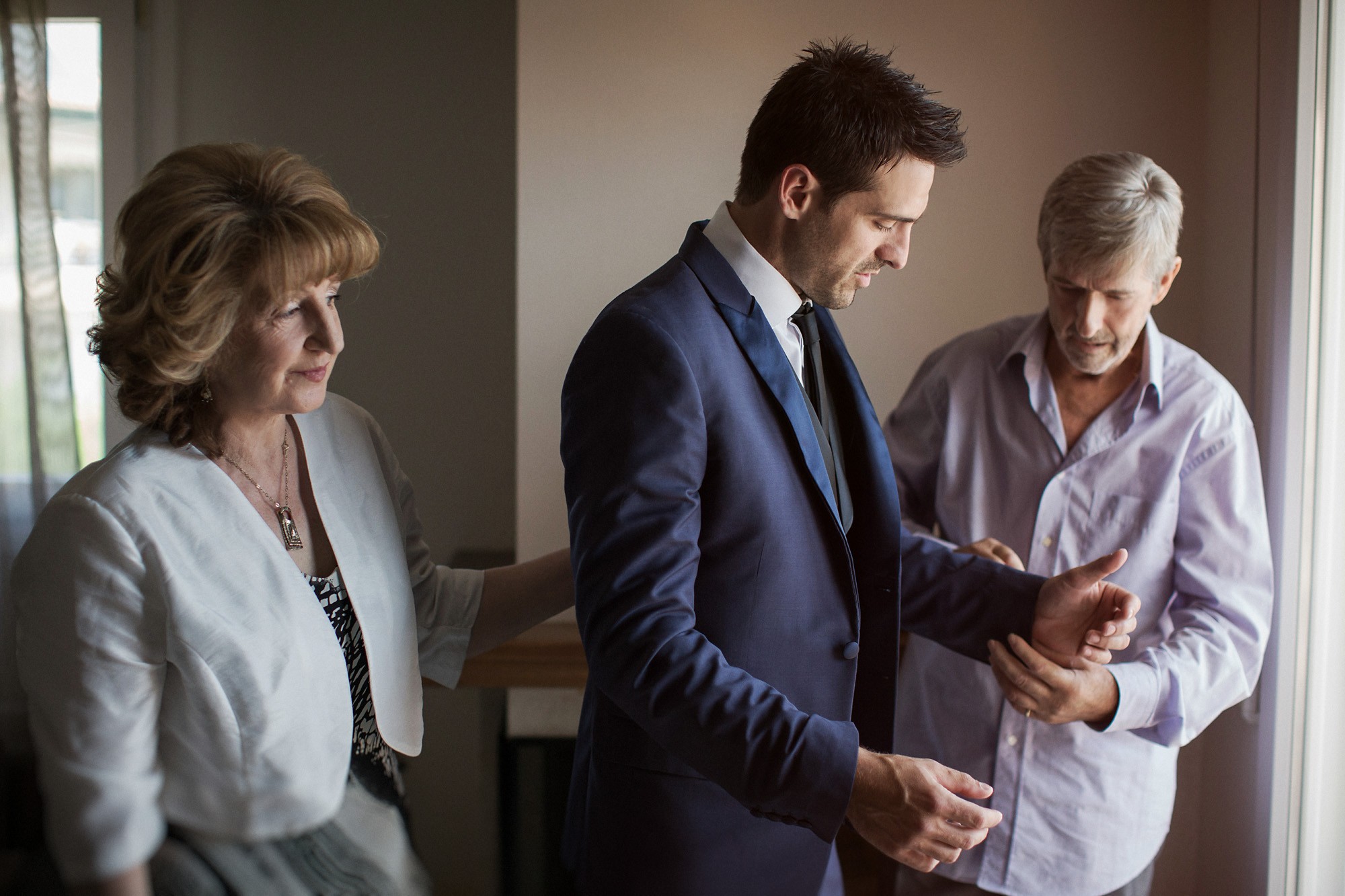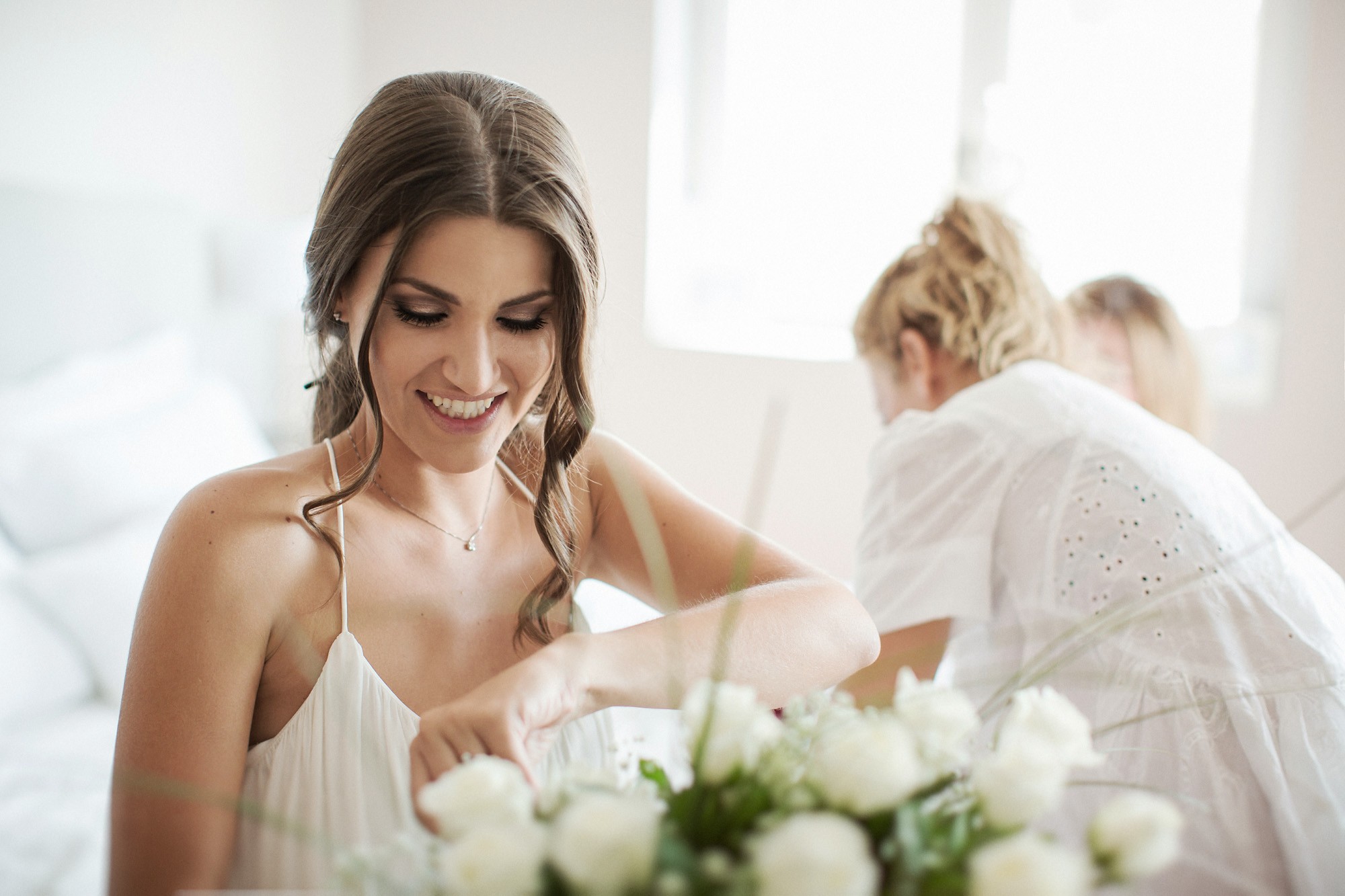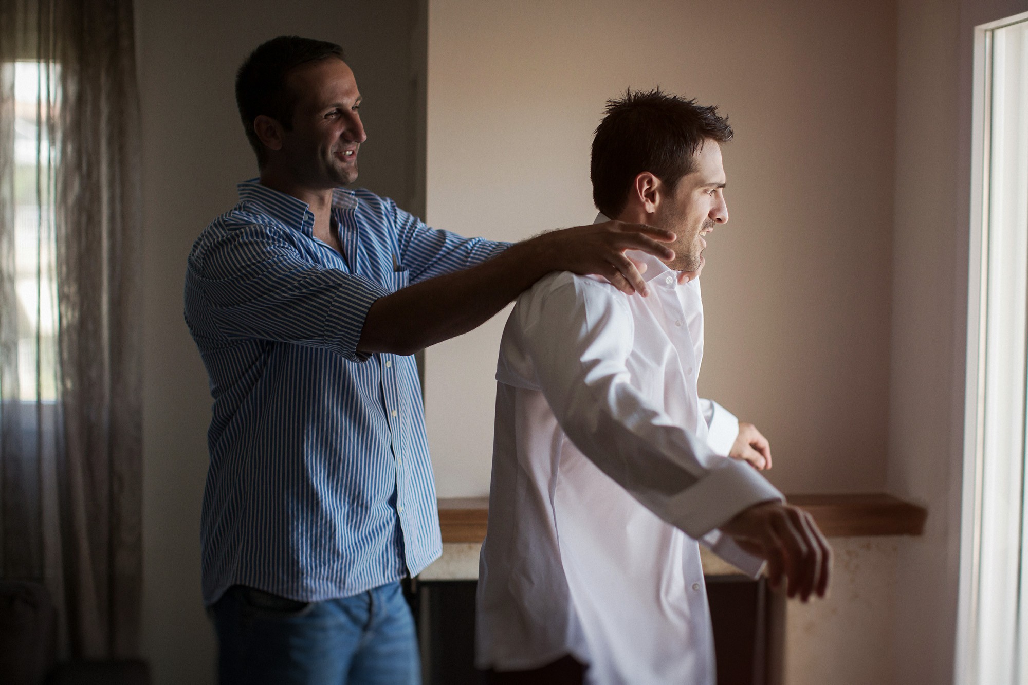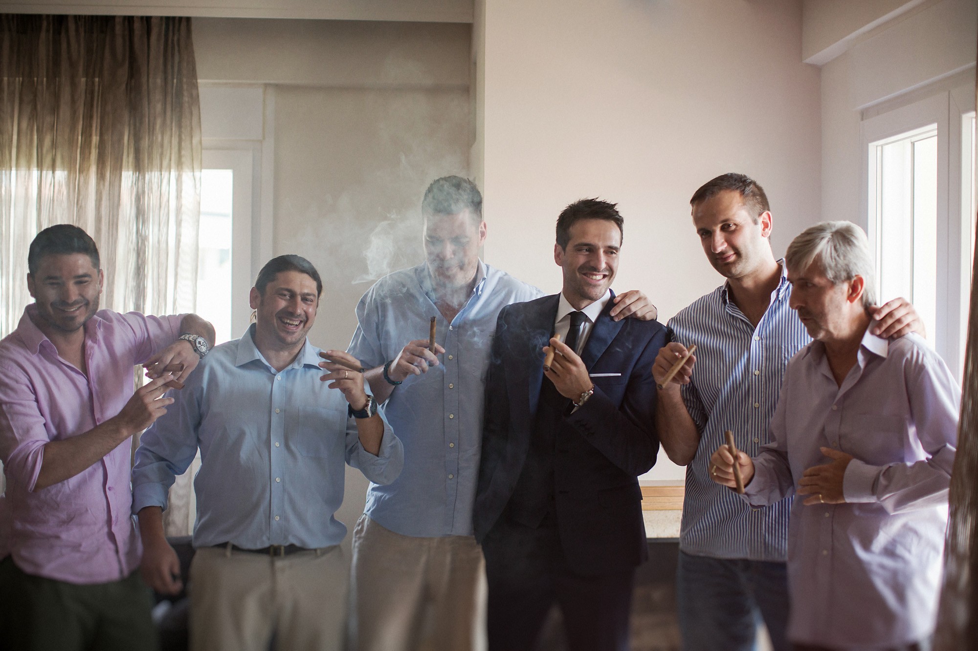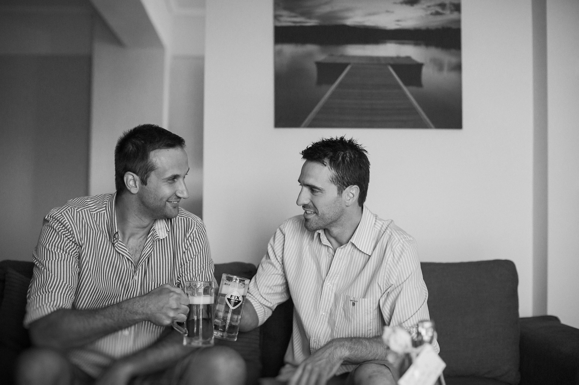 Η Έλενα ξεκίνησε την ετοιμασία της στο σπίτι της μέσα σε οικογενειακή ατμόσφαιρα και εορταστικό κλίμα. Ο χώρος, ήταν στολισμένος με λευκά άνθη, γαμήλιες λεπτομέρειες και κάθε λογής γλυκίσματα να περιμένουν τους καλεσμένους. Οι φίλες της νύφης, πολλές απ' τις οποίες κατέφθασαν από διάφορα μέρη του εξωτερικού για να είναι κοντά της την ημέρα του γάμου της, την βοήθησαν να τελειοποιήσει κάθε λεπτομέρεια που θα την καταστήσει μια υπέροχη νύφη. Aναμφίβολα κατάφερε να μας μαγέψει μέσα στο λευκό της νυφικό με την υπέροχη ουρά, στολισμένο με δαντελένιες λεπτομέρειες και τα λιτά, αέρινα μαλλιά της. Ο Δημήτρης αντίστοιχα, μεταμορφώθηκε σε έναν γοητευτικό γαμπρό με την βοήθεια των φίλων και της οικογένειάς του. Η παρέα, με ανεβασμένη διάθεση και έντονο κέφι ξεκίνησε την προετοιμασία, με προορισμό την πιο σπουδαία μέρα της ζωής του. Το σκουρόχρωμο κοστούμι και η κομψή, κλασική γραβάτα που επέλεξε ο Δημήτρης τον κολάκεψαν ιδιαίτερα, καθιστώντας τον αντάξιο της πανέμορφης νύφης.