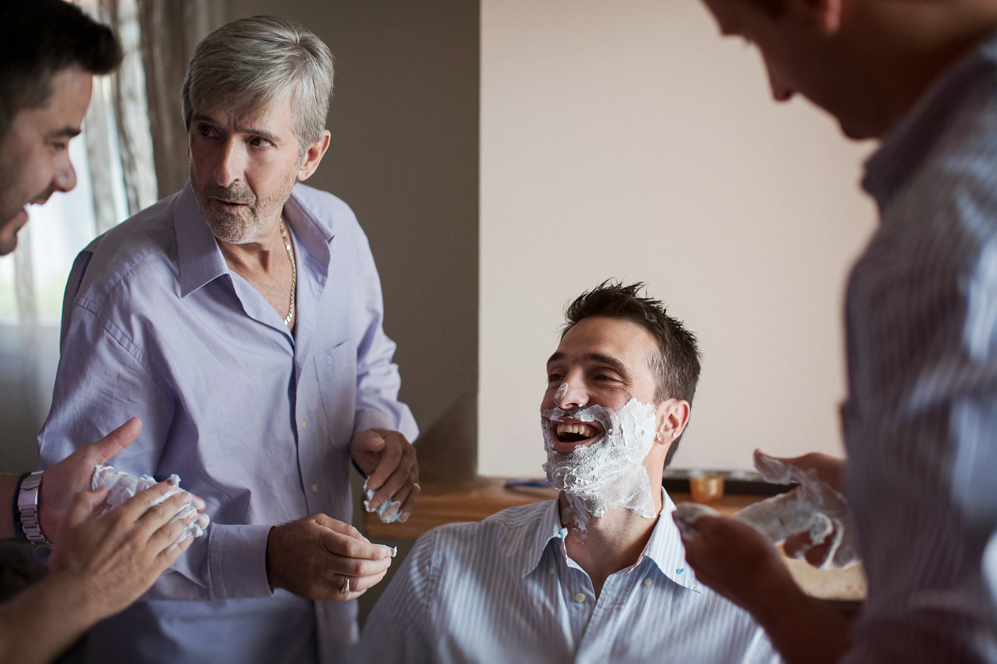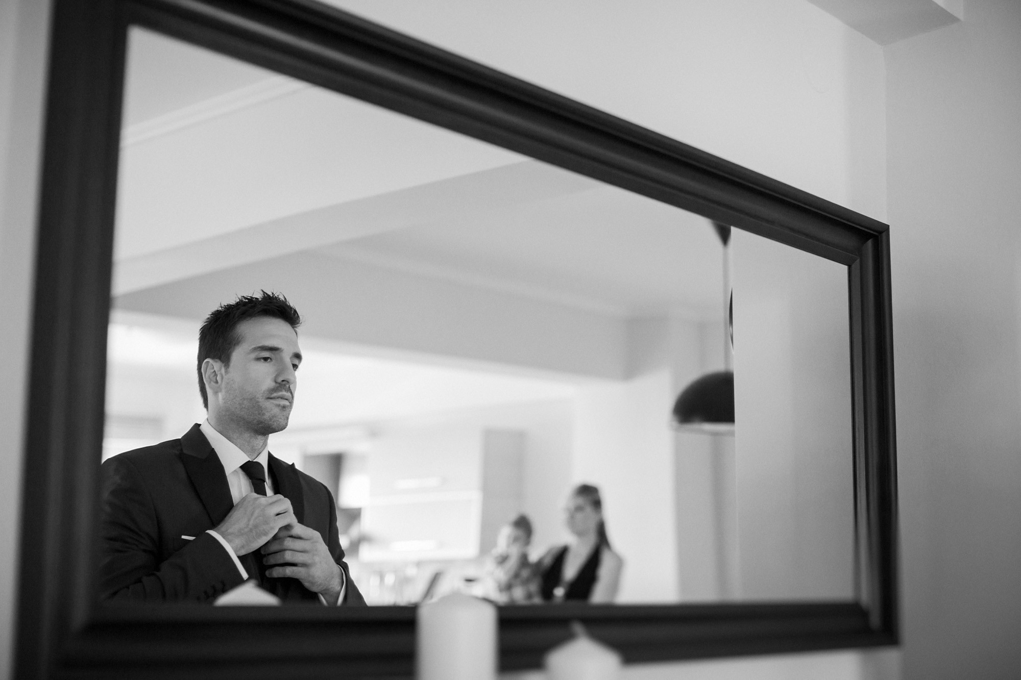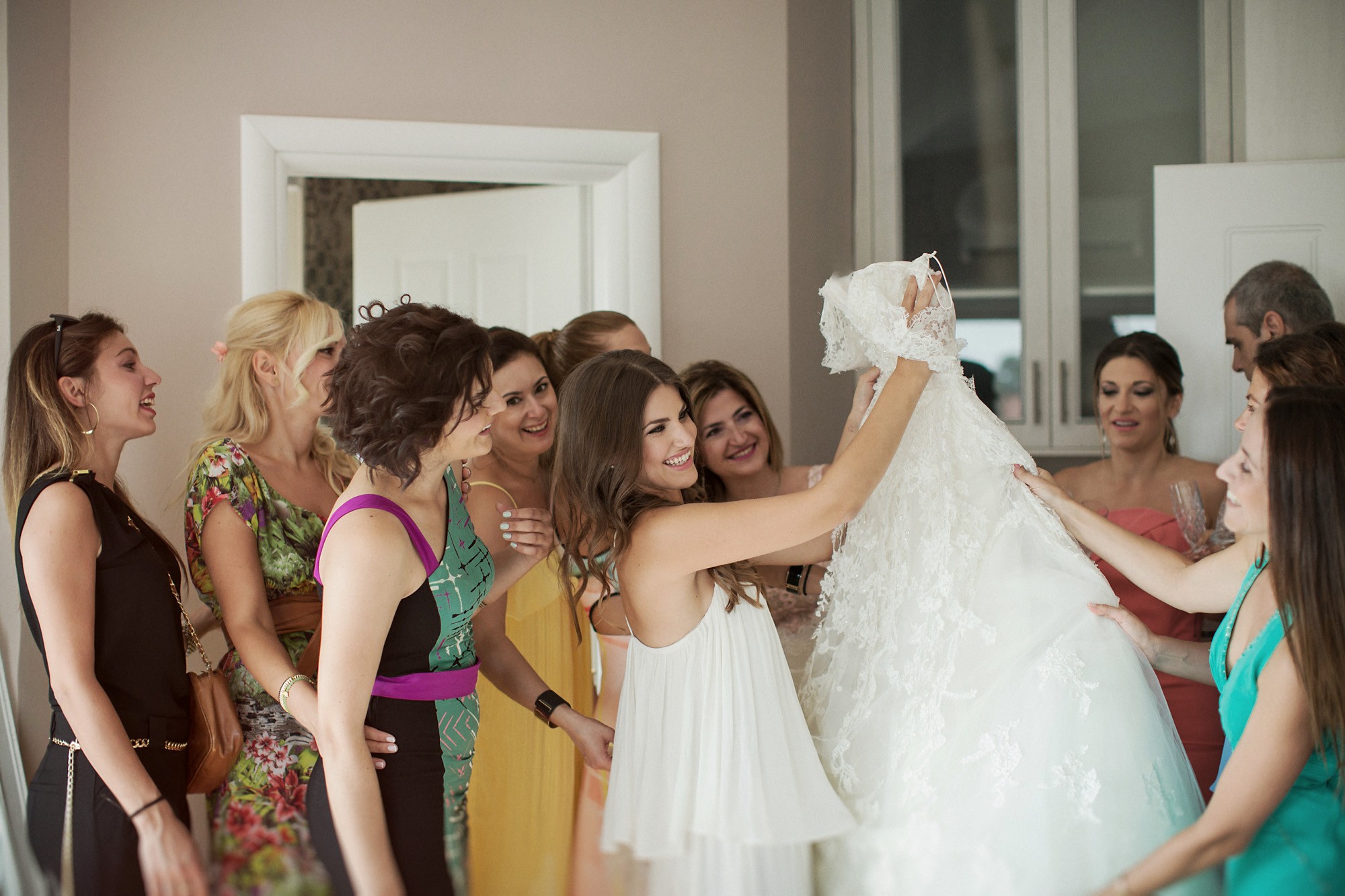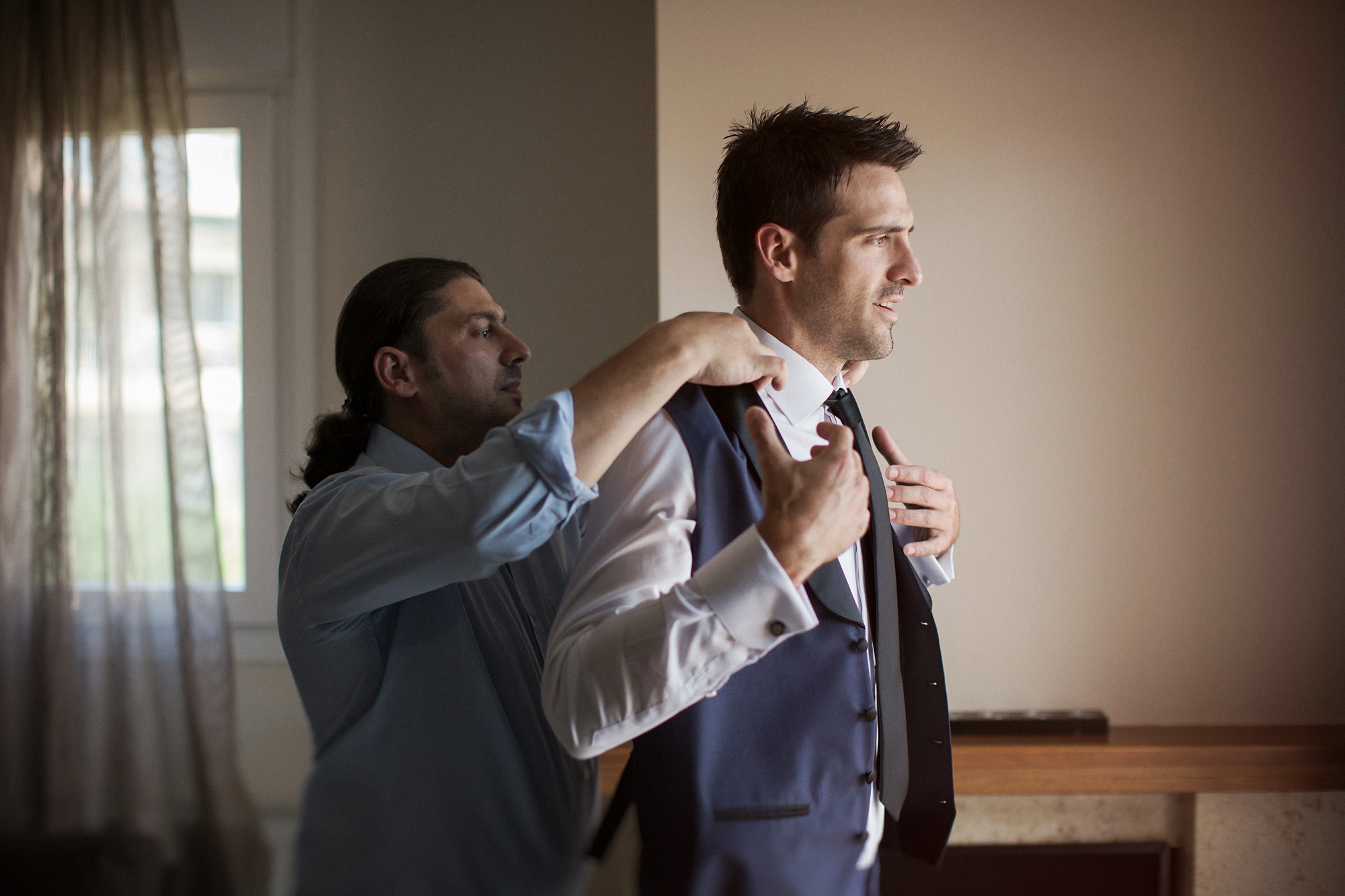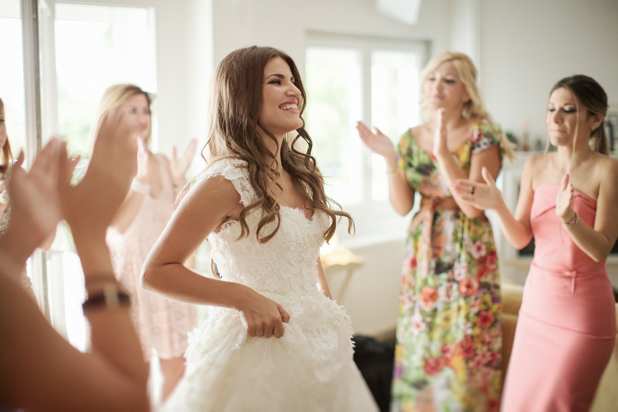 Η Έλενα ξεκίνησε την ετοιμασία της στο σπίτι της μέσα σε οικογενειακή ατμόσφαιρα και εορταστικό κλίμα. Ο χώρος, ήταν στολισμένος με λευκά άνθη, γαμήλιες λεπτομέρειες και κάθε λογής γλυκίσματα να περιμένουν τους καλεσμένους. Οι φίλες της νύφης, πολλές απ' τις οποίες κατέφθασαν από διάφορα μέρη του εξωτερικού για να είναι κοντά της την ημέρα του γάμου της, την βοήθησαν να τελειοποιήσει κάθε λεπτομέρεια που θα την καταστήσει μια υπέροχη νύφη. Aναμφίβολα κατάφερε να μας μαγέψει μέσα στο λευκό της νυφικό με την υπέροχη ουρά, στολισμένο με δαντελένιες λεπτομέρειες και τα λιτά, αέρινα μαλλιά της. Ο Δημήτρης αντίστοιχα, μεταμορφώθηκε σε έναν γοητευτικό γαμπρό με την βοήθεια των φίλων και της οικογένειάς του. Η παρέα, με ανεβασμένη διάθεση και έντονο κέφι ξεκίνησε την προετοιμασία, με προορισμό την πιο σπουδαία μέρα της ζωής του. Το σκουρόχρωμο κοστούμι και η κομψή, κλασική γραβάτα που επέλεξε ο Δημήτρης τον κολάκεψαν ιδιαίτερα, καθιστώντας τον αντάξιο της πανέμορφης νύφης.