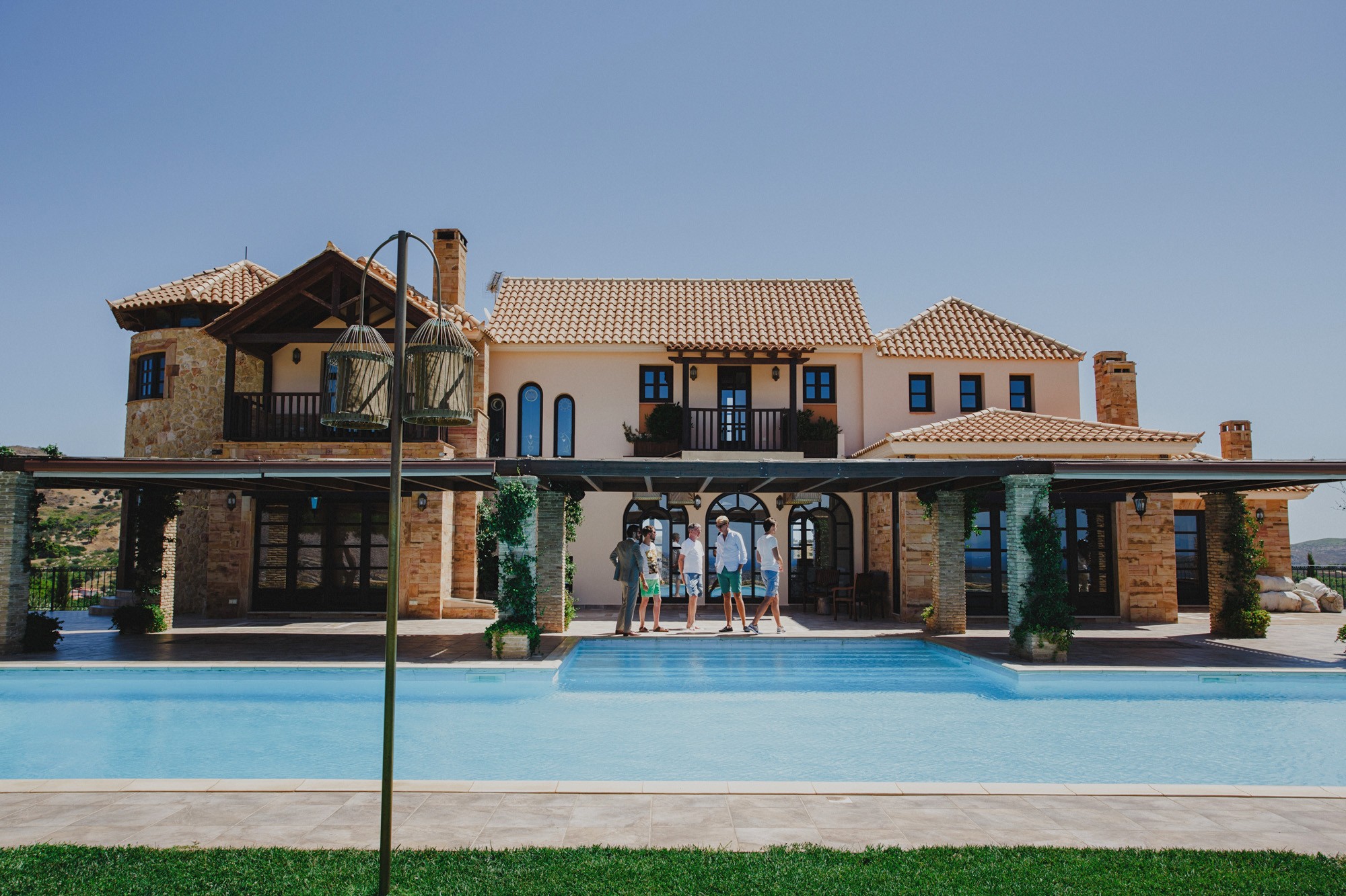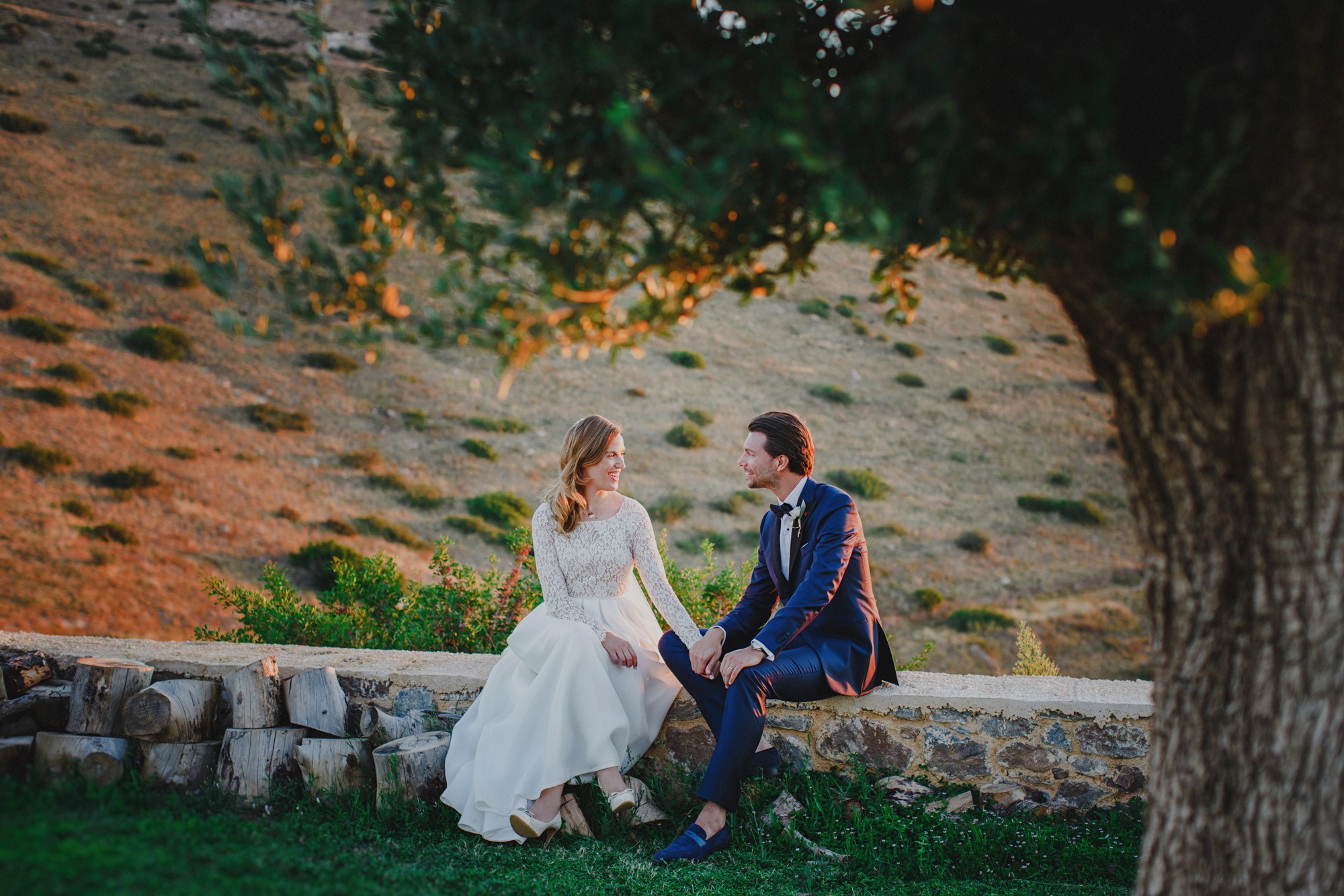 Λυσίανθος, άσπρα τριανταφυλλάκια, κλαδιά ελιάς και κληματαριές με σταφύλια στόλιζαν το κτήμα, καθώς και άνετες θέσεις για τους καλεσμένους ειδικά σχεδιασμένες για την χαλάρωση και την απόλαυση της θέας. Ένα βουκολικό τοπίο με αξεπέραστη ομορφιά και αρώματα που αμβλύνουν τις αισθήσεις, ένα αρχοντικό με φινέτσα και αρχιτεκτονική μιας άλλης εποχής που σε καλεί να ζήσεις το παραμύθι και ένα ζευγάρι τόσο αισιόδοξο και ερωτευμένο, είναι όλα όσα ζητά ένας φωτογράφος γάμου.