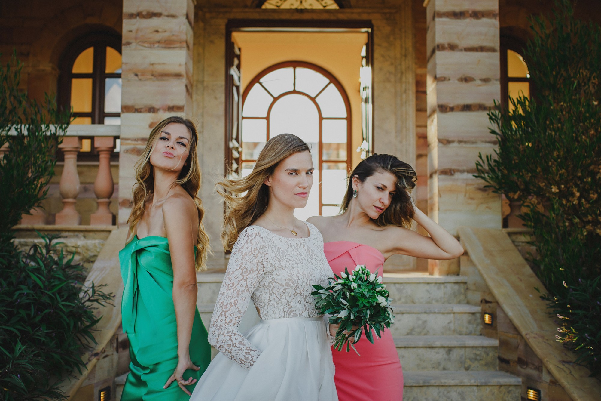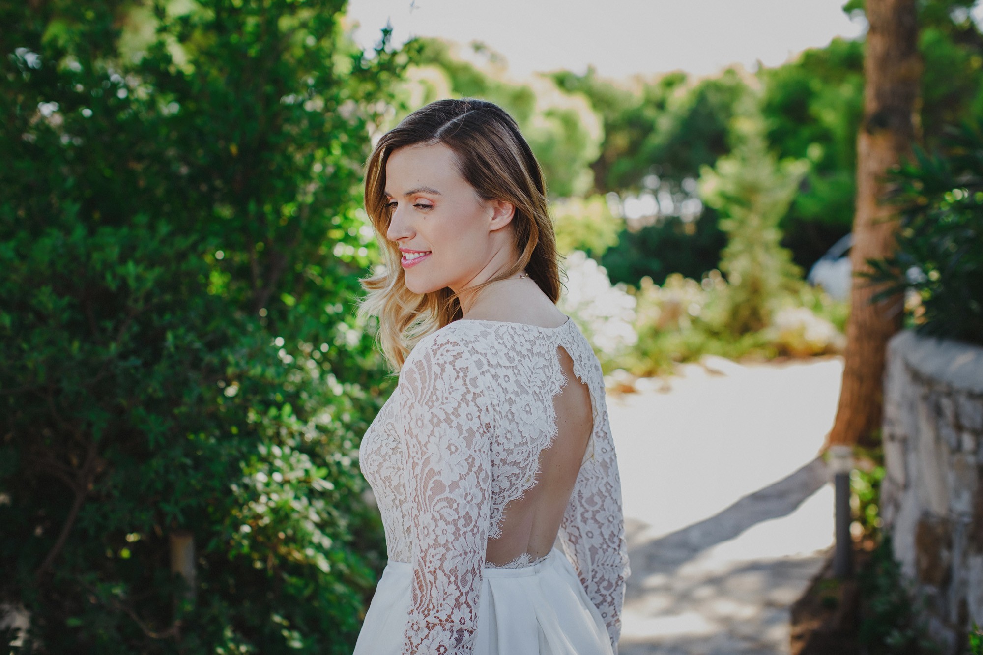 Η Mary επέλεξε ένα χειροποίητο νυφικό Γαλλικού στυλ του σχεδιαστή Rime Arodaky, ρομαντικό και σικ αλλά κάπως εναλλακτικό και ροκ ταυτόχρονα. Η ανθοδέσμη της αποτελούνταν από κλαδάκια ελιάς και άσπρα τριανταφυλλάκια. Η εικόνα ολοκληρωνόταν με τον απόλυτα κομψό JanWicher και το όλο φόντο φυσικά, σχεδιασμένο ώστε να αποδώσει την πιο εκλεπτυσμένη πλευρά της Ελλάδας, κάνοντας την φωτογραφία γάμου ανυπέρβλητα γοητευτική.