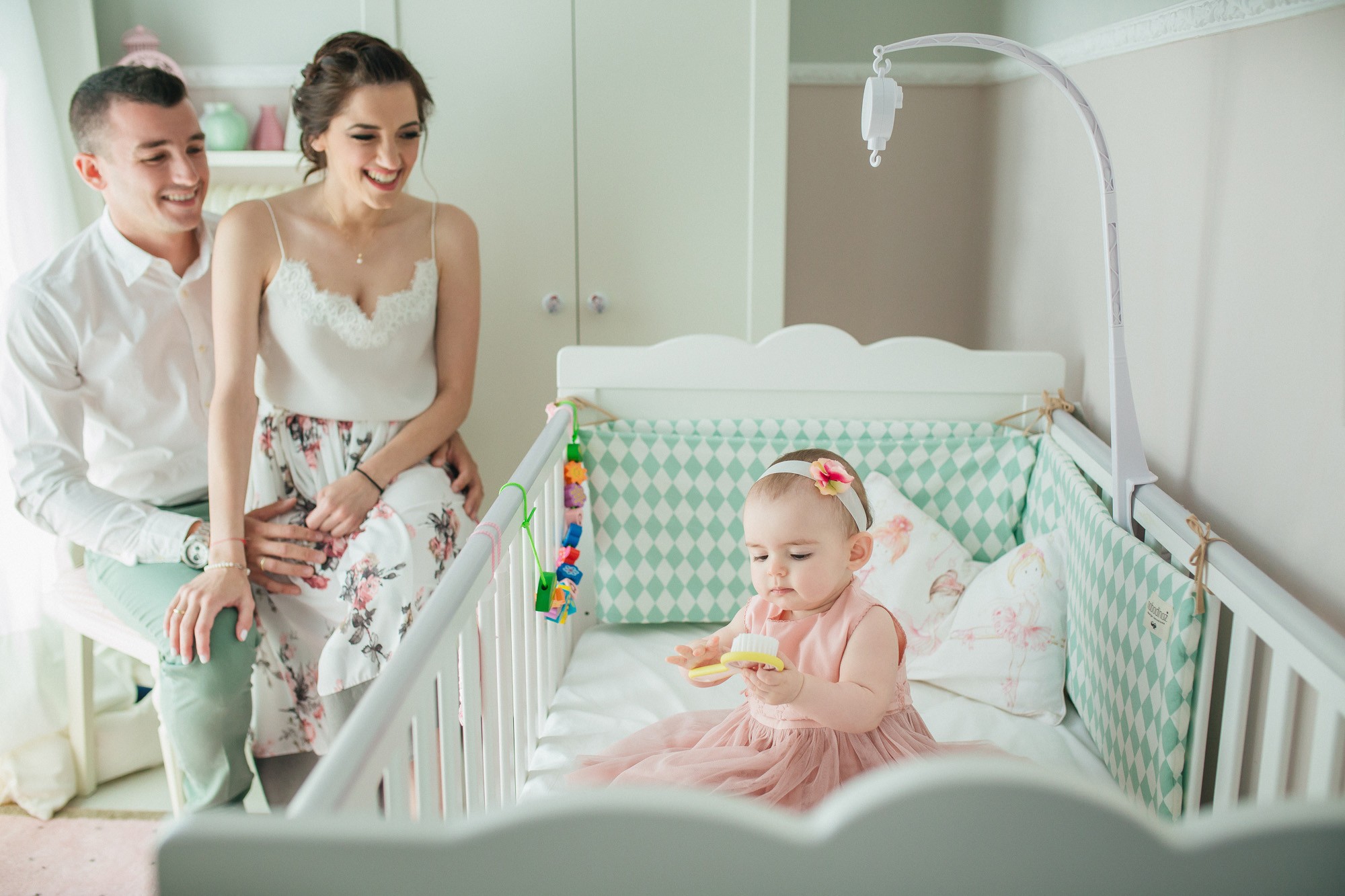 Την βάπτιση θα φιλοξενούσε ο Ιερός Ναός Αγίου Ανδρέου, εκκλησία θαυμαστή χάρη στην περίτεχνη αρχιτεκτονική της. Ο στολισμός όπως και οι μπομπονιέρες της βάπτισης κυμάνθηκαν σε χρωματισμούς του απαλού ροζ και βεραμάν. Η χρωματική αυτή παλέτα τηρήθηκε και από την οικογένεια της Ανδριάνας δημιουργώντας μία πολύ άρτια εικόνα για την φωτογράφιση της βάπτισης.