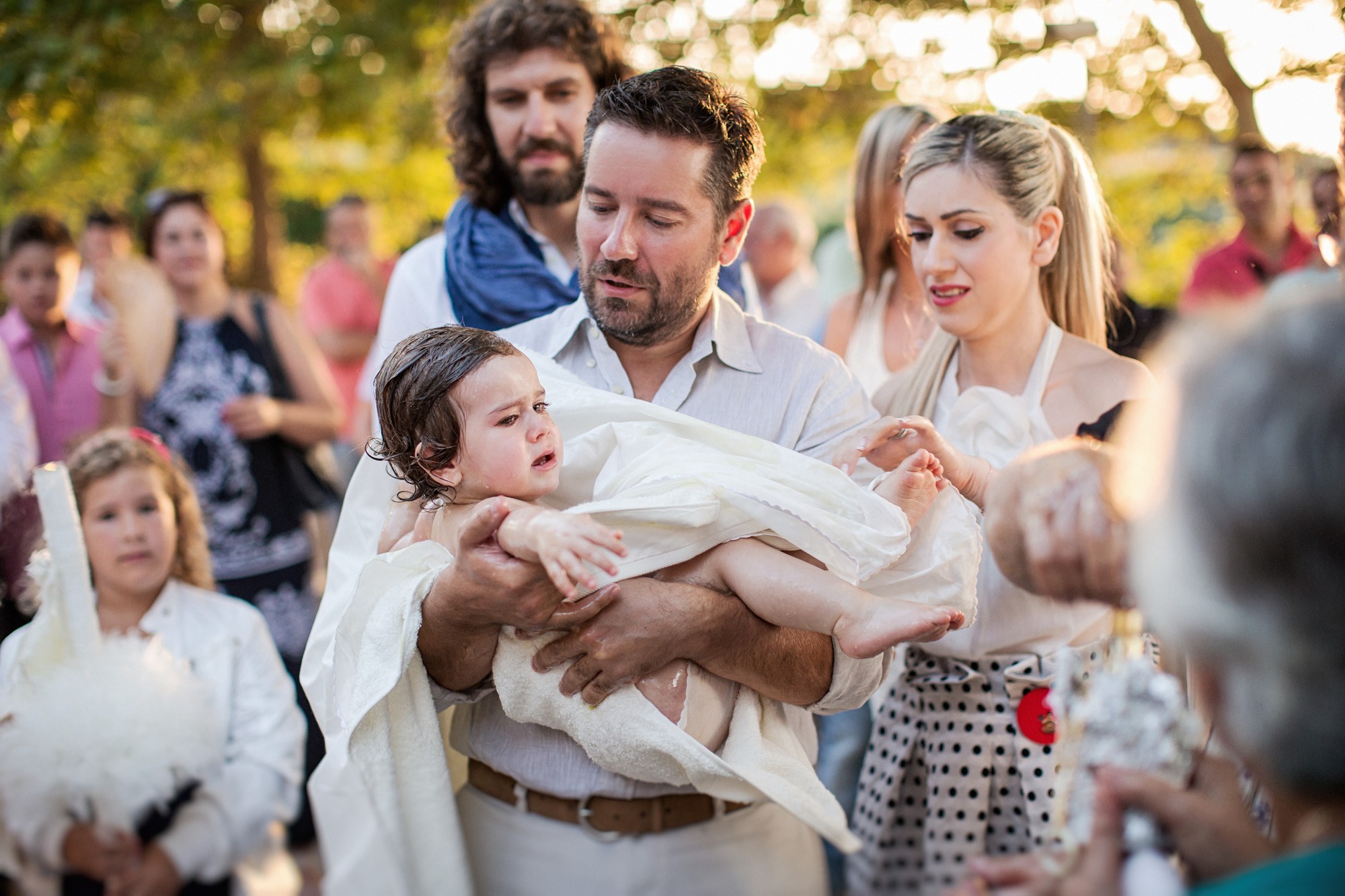 Η μέρα της βάπτισης της μικρής Πελίνας έφτασε. Φίλοι και συγγενείς συγκεντρώθηκαν στην εκκλησία για να παρακολουθήσουν την τελετή με μεγάλη προσμονή και τρυφερά χαμόγελα. Η μικρούλα ήταν ιδιαίτερα ζωηρή και ανήσυχη καθ' όλη την διάρκεια του μυστηρίου, πράμα που ωστόσο δεν μας εμπόδισε από το να απομείνουμε με μια πανέμορφη φωτογράφιση βάπτισης που εμπεριέχει όλες τις δυνατές συγκινήσεις της ημέρας.
