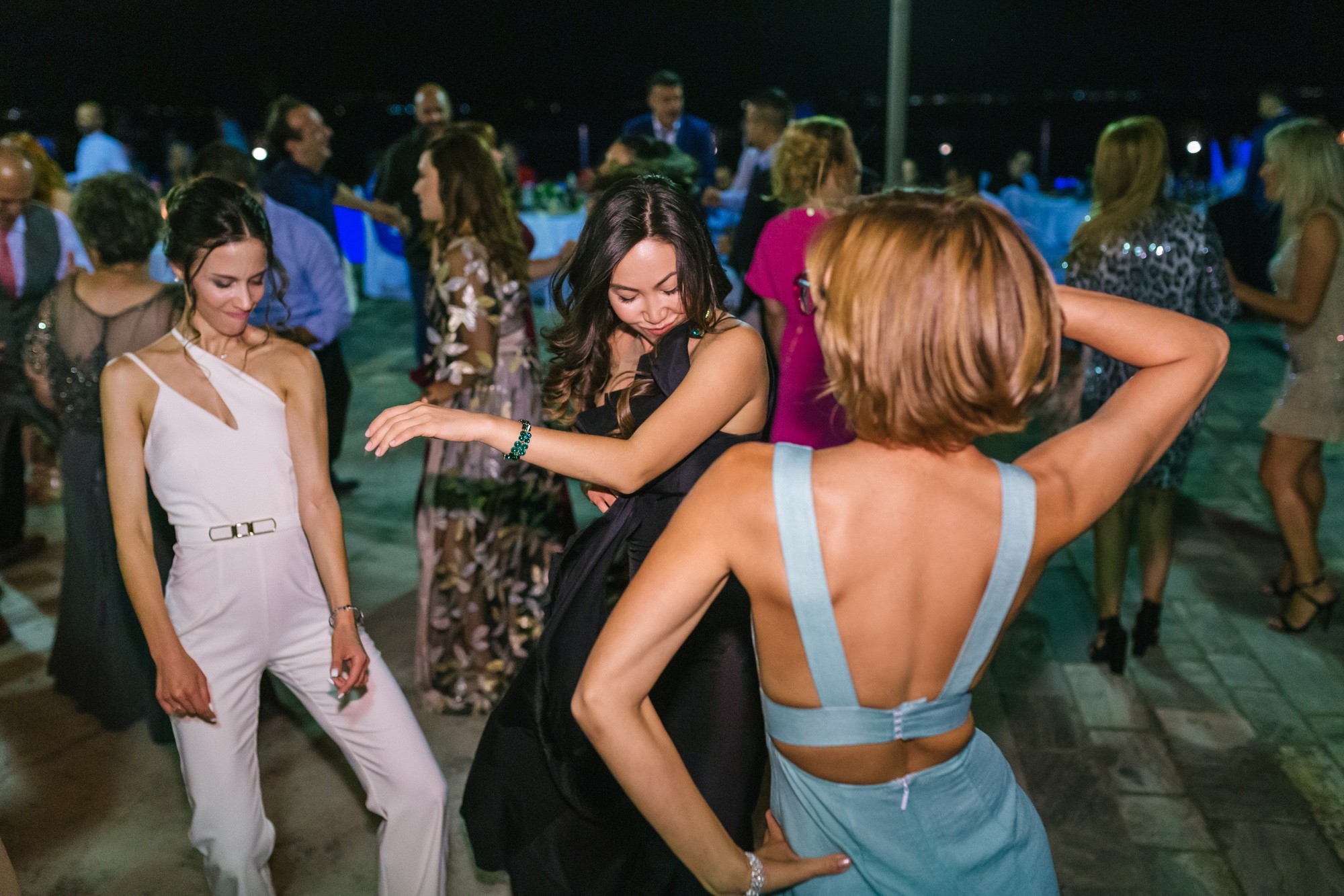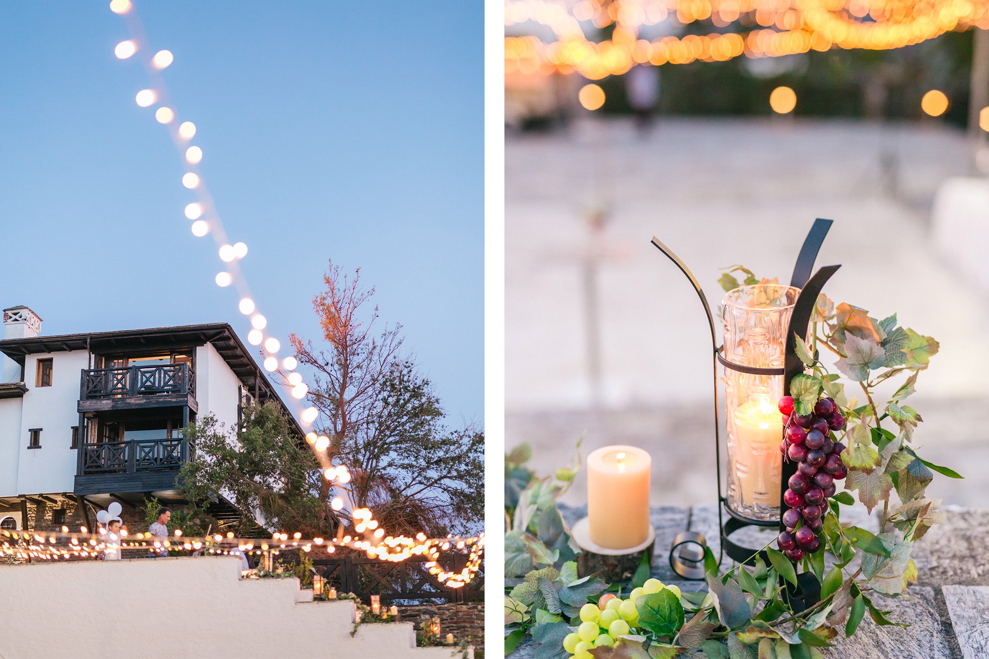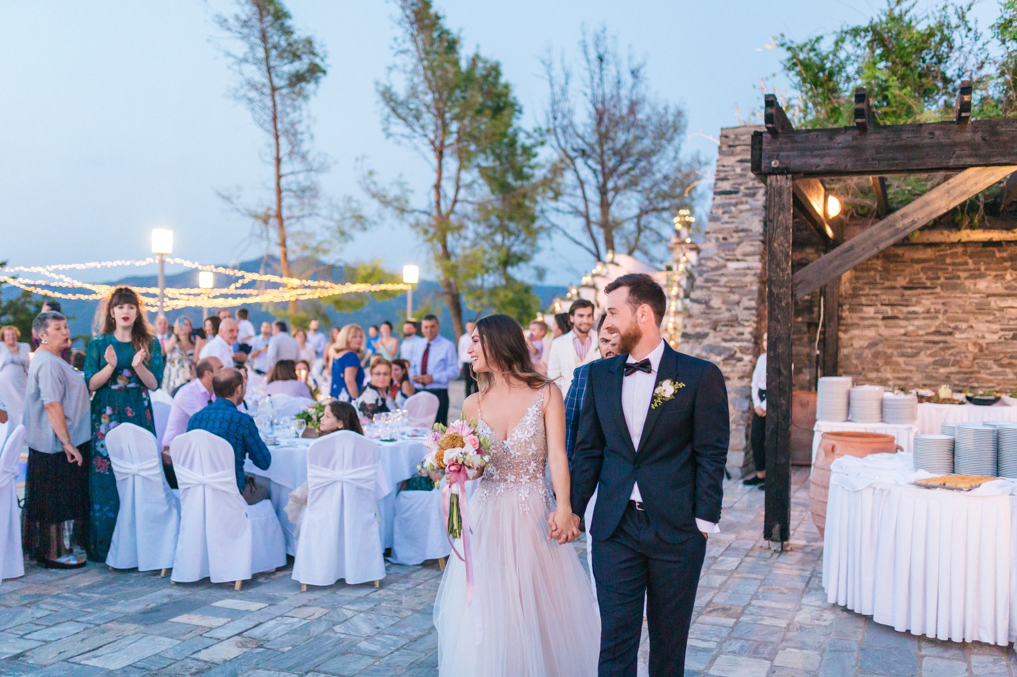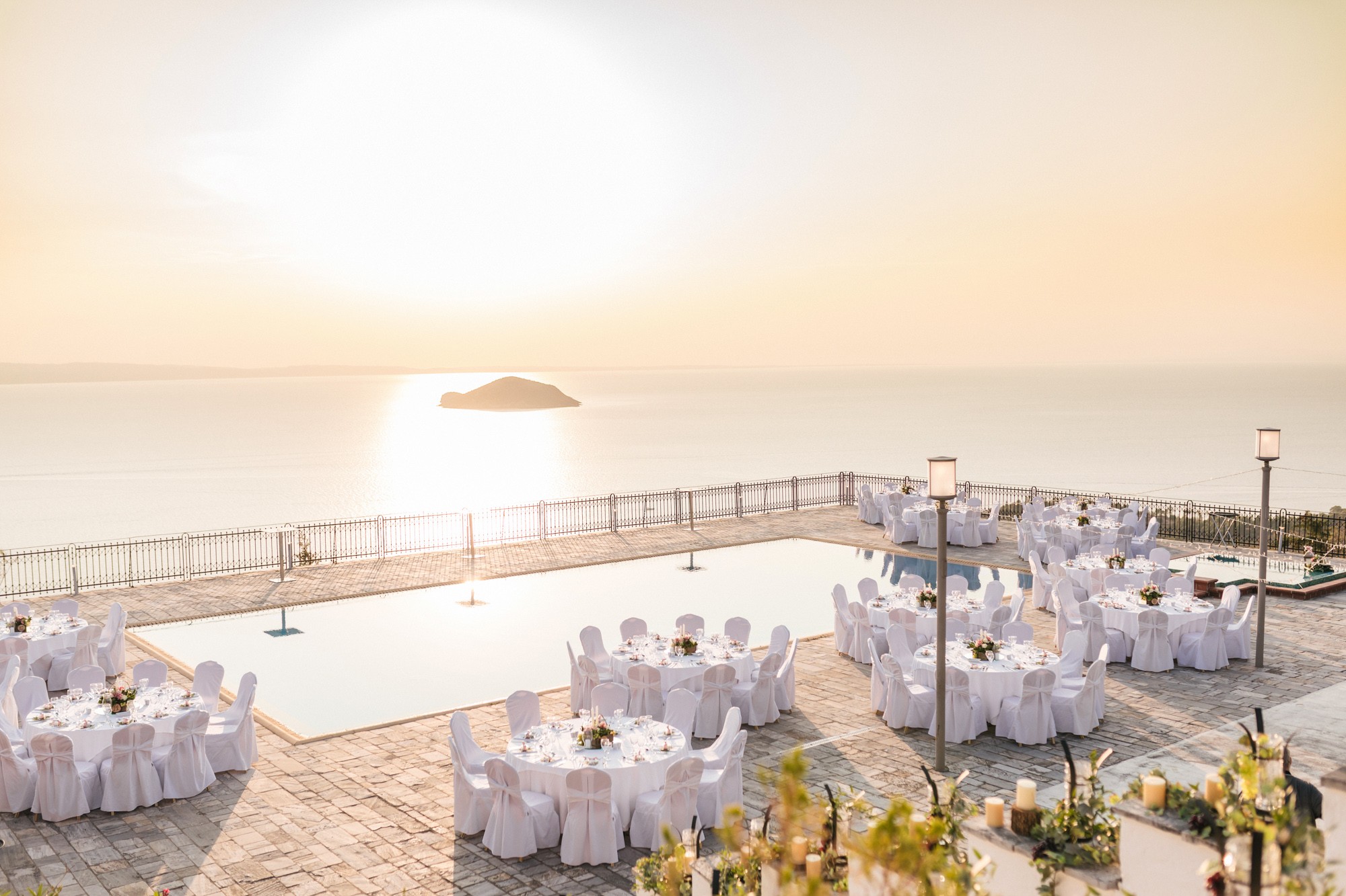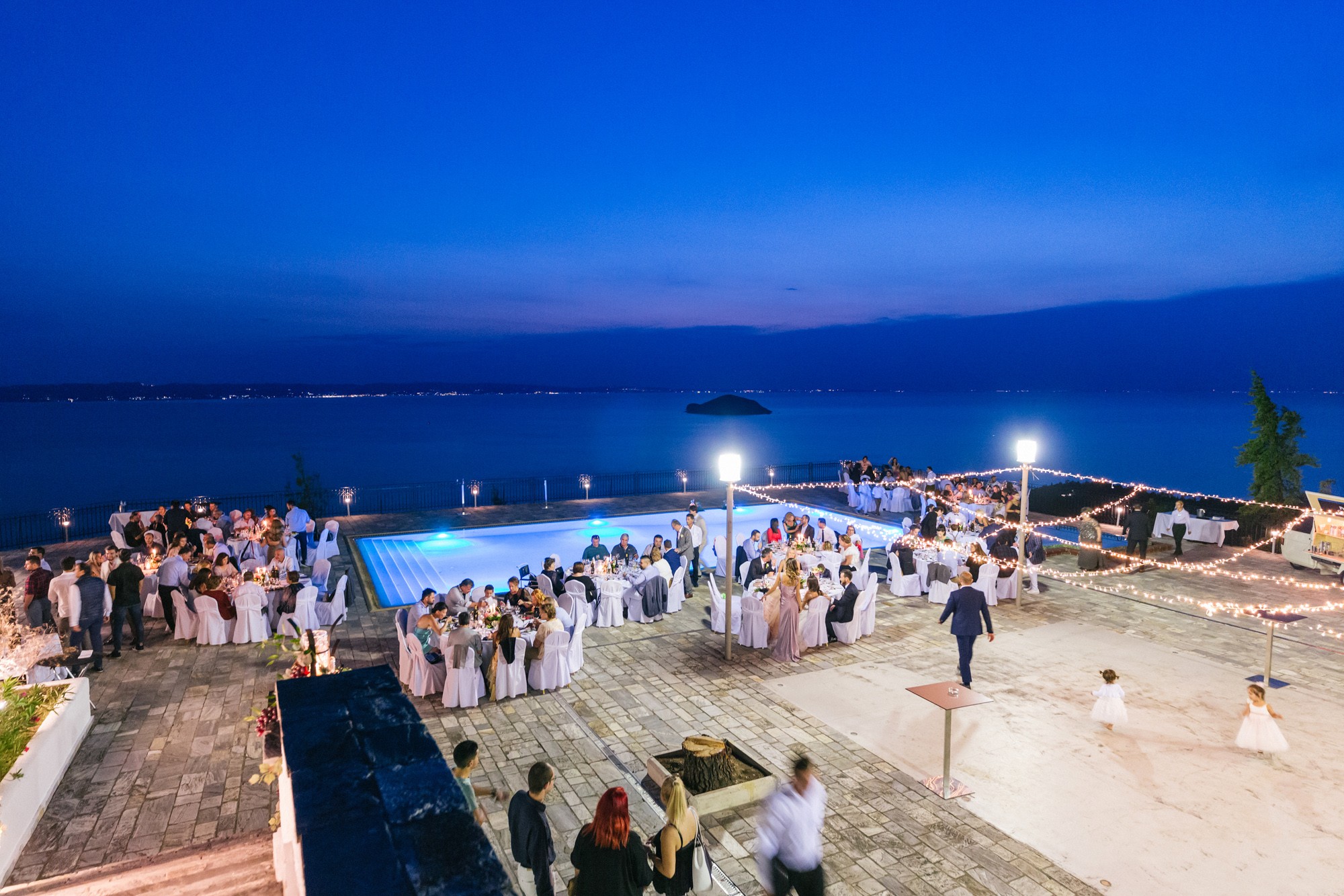 Στην περιοχή γύρω από την εξωτερική πισίνα, ο χώρος είχε διαμορφωθεί με τραπέζια, στολισμένα πανέμορφα, που περίμεναν τους καλεσμένους και το ζευγάρι για το εορταστικό δείπνο του γάμου. Η είσοδος του ζευγαριού ήταν μόνο η αρχή για ένα απερίγραπτο πάρτυ, που τίμησε τις παραδόσεις και τους χορούς της Ελλάδας και έκλεισε με πολύ ένταση, χορό στον ρυθμό της σύγχρονης μουσικής που έπαιζε dj και τη διάθεση όλων ευδιάθετη. Ο γάμος της Σάντρας και του Λεωνίδα είναι ένα ξεχωριστό ταξίδι φωτογραφίας γάμου και θα μας μείνει αξέχαστος.