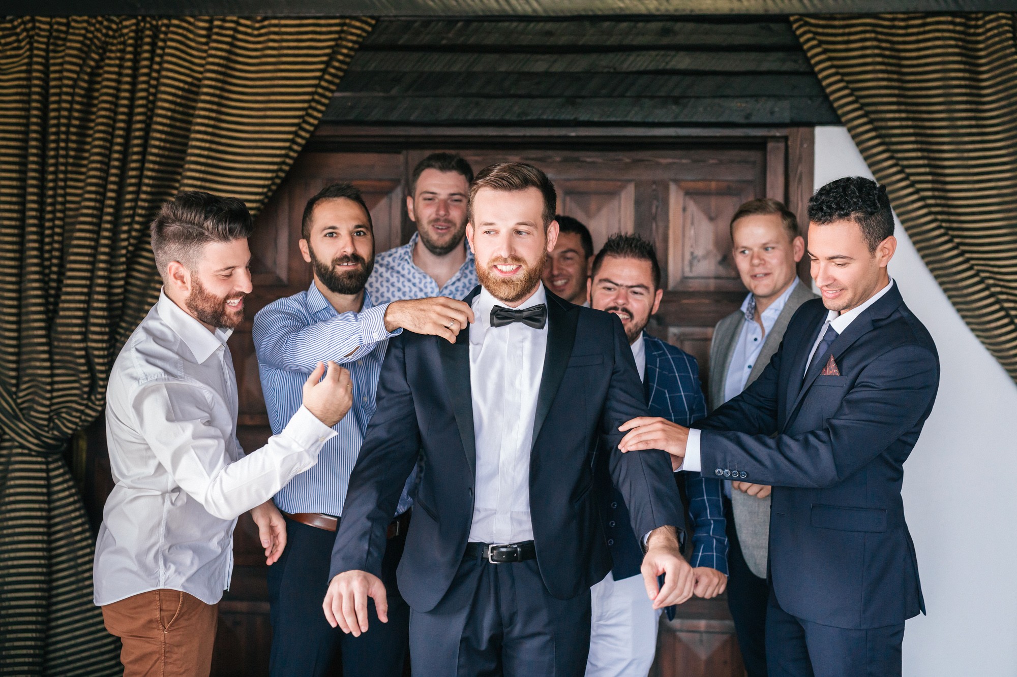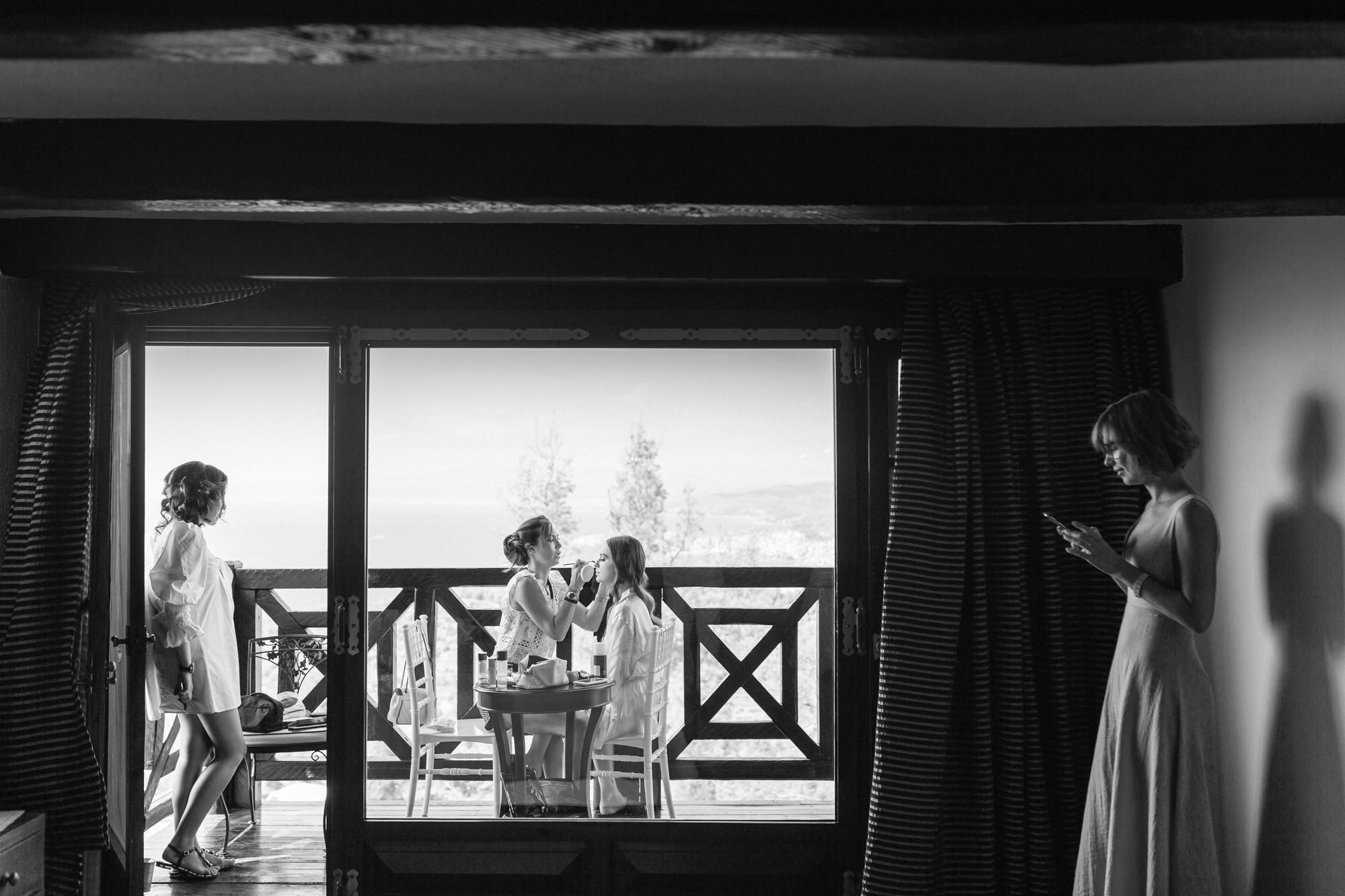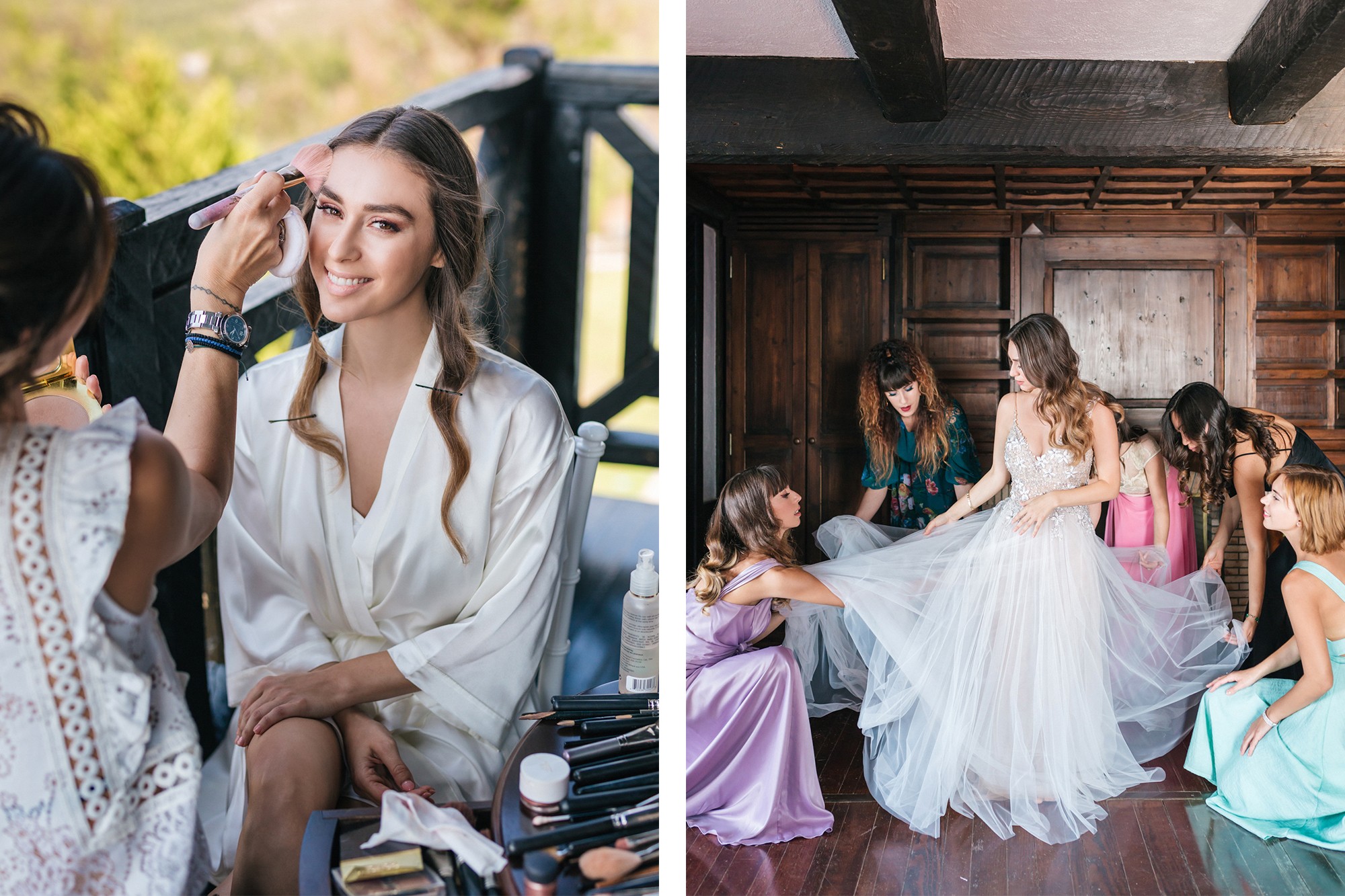 Η Villa Galini αποτελείται από 11 δωμάτια μοναστηριακού τύπου και 13 σουίτες υψηλής αισθητικής. Το ζευγάρι επέλεξε να προετοιμαστεί στη βίλα, έχοντας στο πλευρό του κοντινούς συγγενείς και φίλους που φιλοξενούσαν μαζί τους. Η ατμόσφαιρα που δημιούργησαν οι εκλεκτοί καλεσμένοι ήταν μοναδική και θα παραμείνει αξέχαστη ανάμνηση στο ζευγάρι.