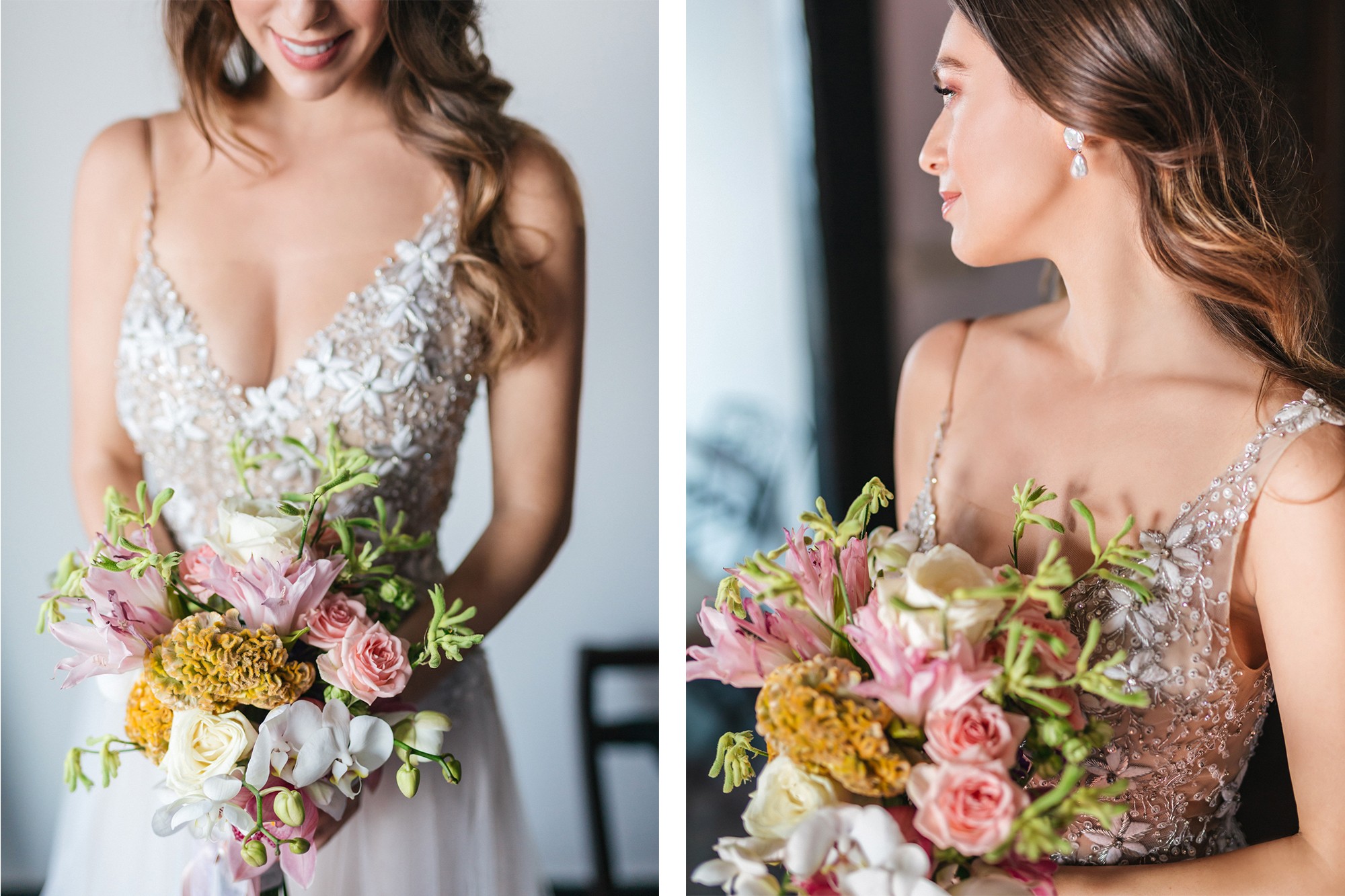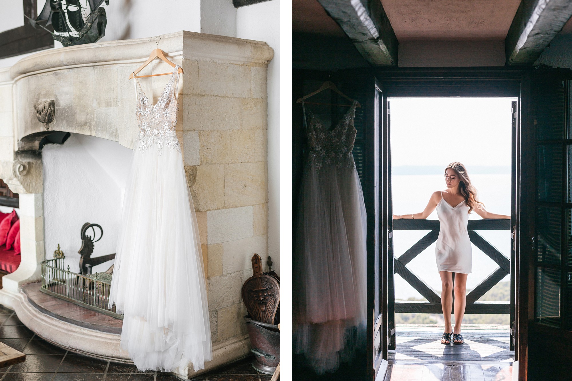 Η Σάντρα προετοιμάστηκε στη σουίτα με πανοραμική θέα στον Τορωναίο κόλπο. Οι αγαπημένες φίλες της, ιδιαίτερα συγκινημένες την έντυσαν με το παραμυθένιο νυφικό της από την Ισραηλινή σχεδιάστρια νυφικών υψηλής ραπτικής Liz Martinez. Το σύνολό της ολοκληρώθηκε με τα τα λαμπερά Jimmy Choo πέδιλα της. Ο Λεωνίδας παράλληλα με την αγαπημένη του, προετοιμάστηκε σε διπλανή σουίτα με την παρέα φίλων. Το κοστούμι που επέλεξε είχε κλασική γραμμή, από τον οίκο Armani.