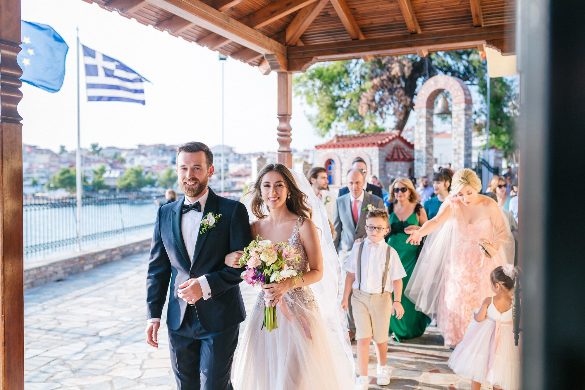 Το μυστήριο του γάμου τους τελέστηκε στον Ιερό Ναό Πανμεγίστων Ταξιαρχών που βρίσκεται στο κέντρο του Νέου Μαρμαρά. Ο καλοκαιρινός αέρας έκανε την ατμόσφαιρα ευχάριστη καθώς οι καλεσμένοι και ο Λεωνίδας περίμεναν να αντικρίσουν τη νύφη. Η Σάντρα έφτασε στην εκκλησία με τη συνοδεία του αδελφού και του πατέρα της. Η στιγμή όπου το ζευγάρι συναντιέται στην εκκλησία έχει πάντα τις πιο δυνατές φωτογραφίες γάμου.