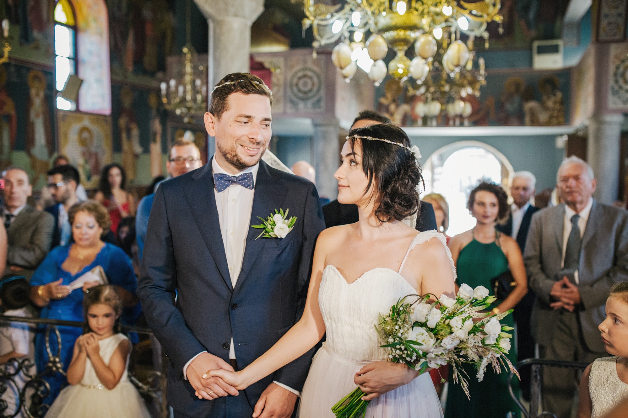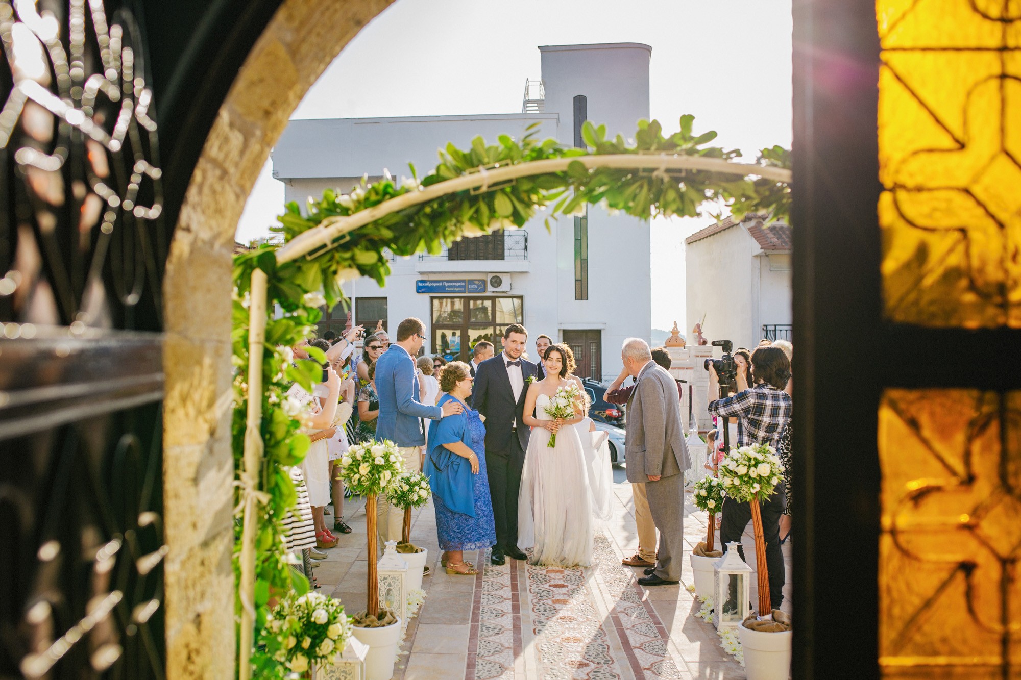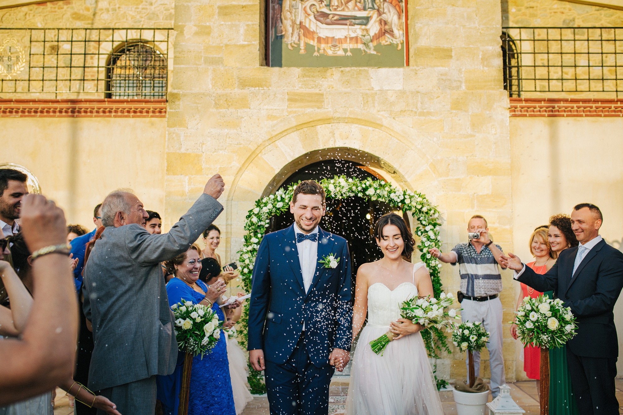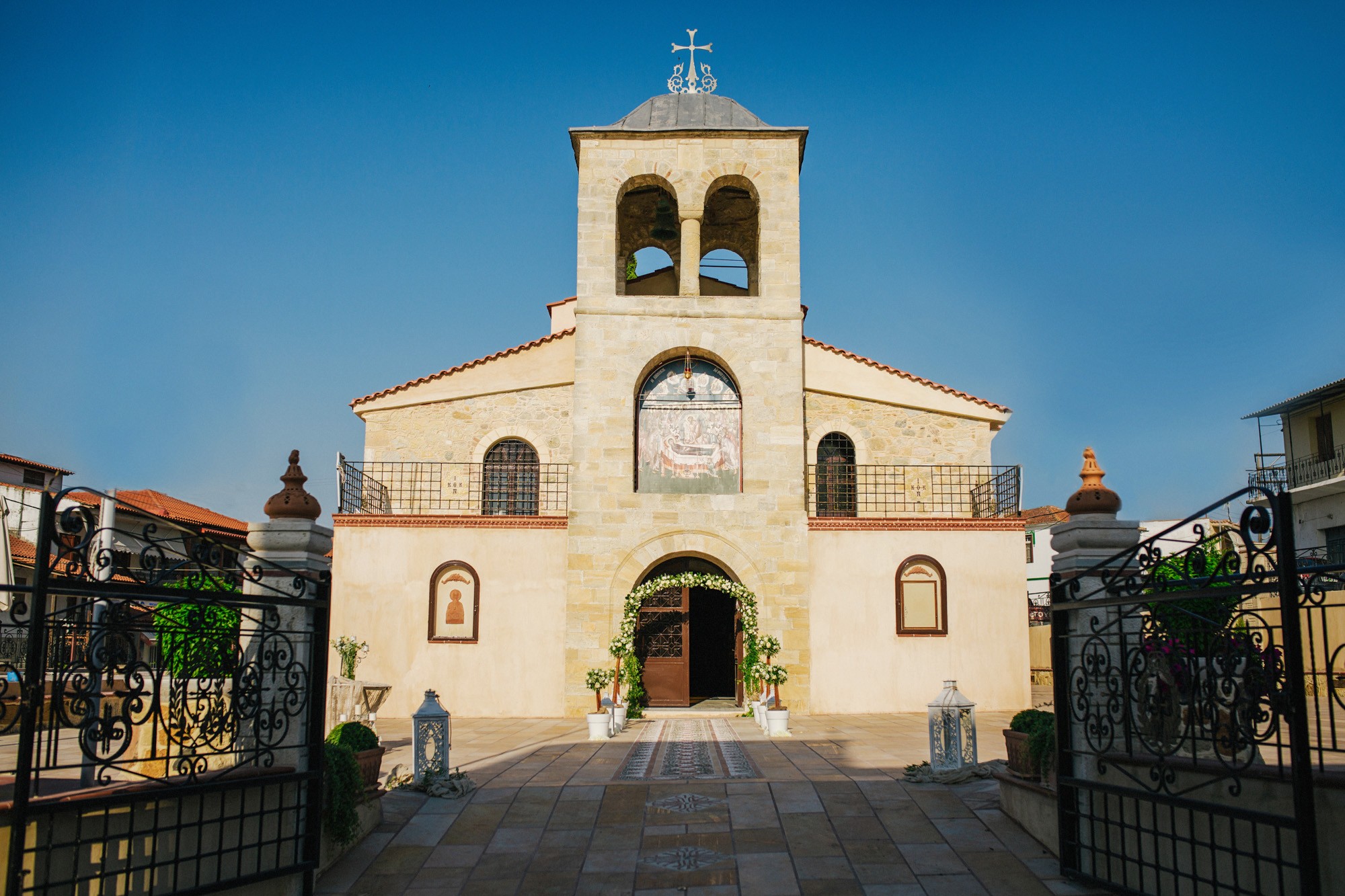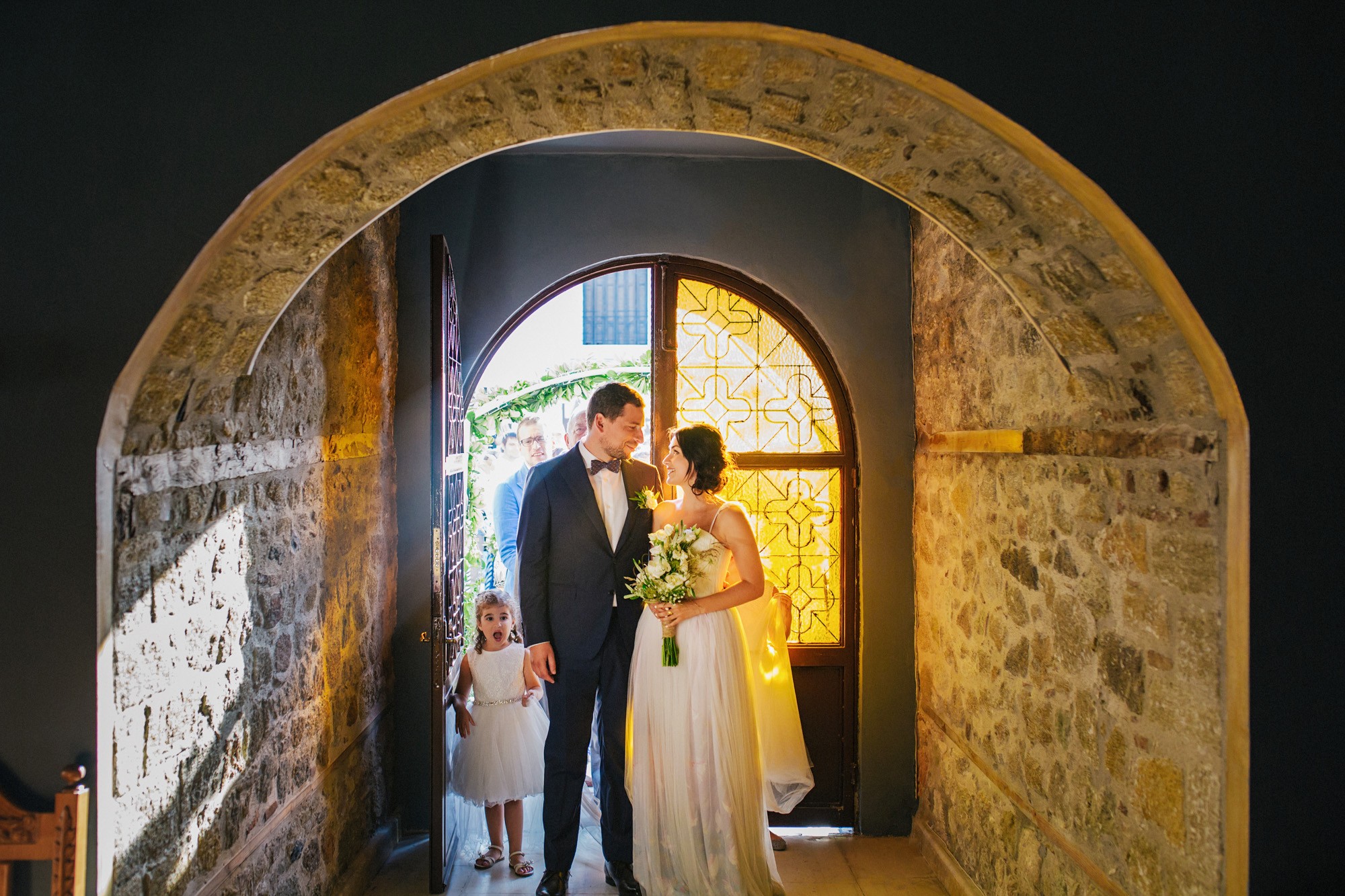 Η εκκλησία όπου επιτελέσθηκε το μυστήριο, βρισκόταν σε κάποιο κοντινό χωριό της περιοχής. Ο στολισμός κέρδισε τις καλύτερες εντυπώσεις, με τα λευκά τριαντάφυλλα να κυριαρχούν ανάμεσα σε άλλα ιδιαίτερα λουλούδια και την ανθισμένη πρασινάδα του προαύλιου χώρου να ξεπροβάλλει από κάθε γωνιά. Η πολυπόθητη στιγμή της συνάντησης του ζευγαριού έφτασε απελευθερώνοντας έντονα συναισθήματα και δίνοντάς μου τις προοπτικές για μια εκπληκτική φωτογράφιση γάμου.