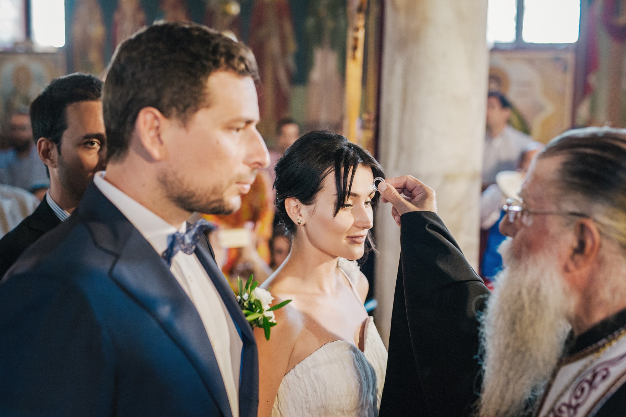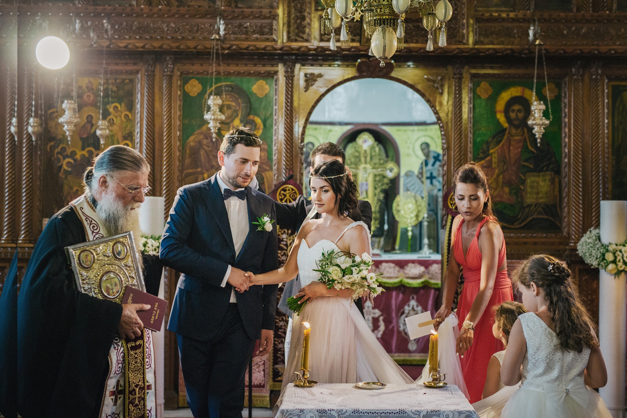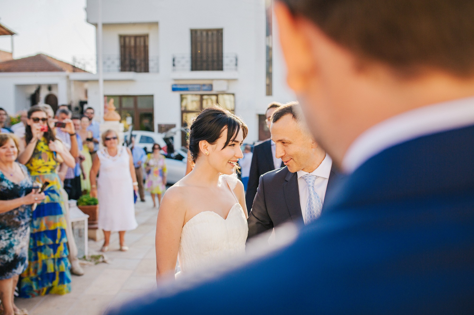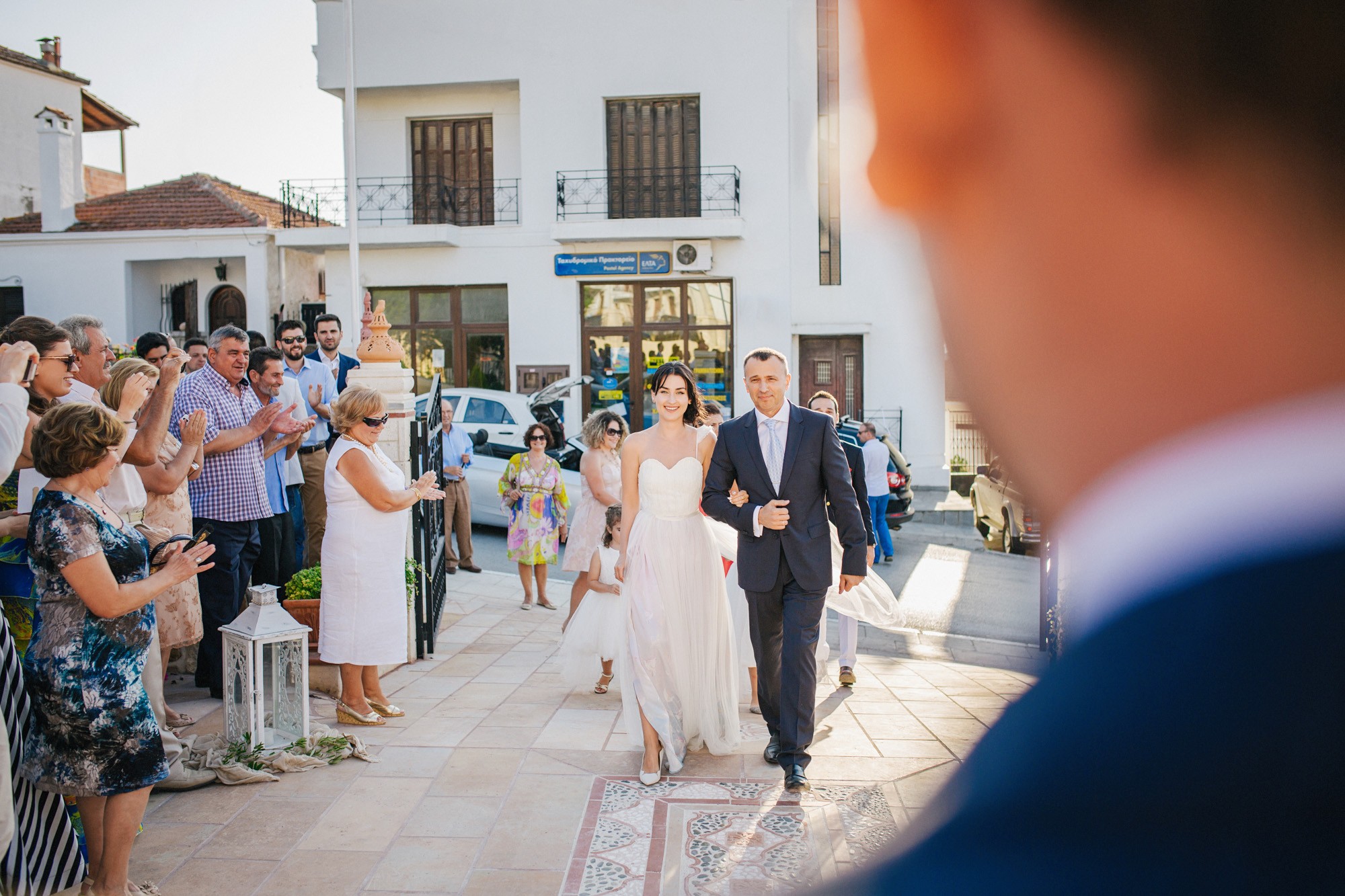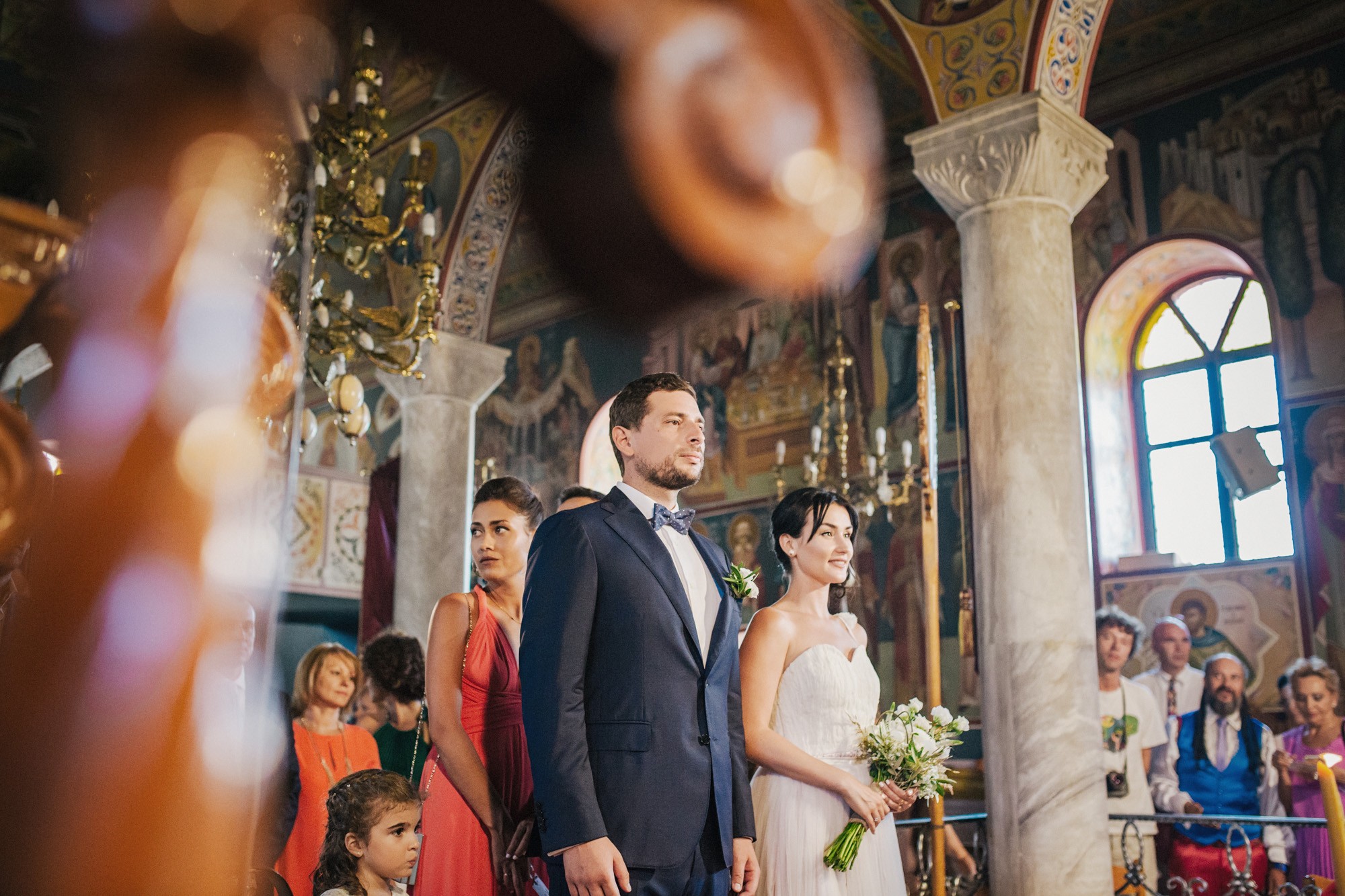 Η εκκλησία όπου επιτελέσθηκε το μυστήριο, βρισκόταν σε κάποιο κοντινό χωριό της περιοχής. Ο στολισμός κέρδισε τις καλύτερες εντυπώσεις, με τα λευκά τριαντάφυλλα να κυριαρχούν ανάμεσα σε άλλα ιδιαίτερα λουλούδια και την ανθισμένη πρασινάδα του προαύλιου χώρου να ξεπροβάλλει από κάθε γωνιά. Η πολυπόθητη στιγμή της συνάντησης του ζευγαριού έφτασε απελευθερώνοντας έντονα συναισθήματα και δίνοντάς μου τις προοπτικές για μια εκπληκτική φωτογράφιση γάμου.