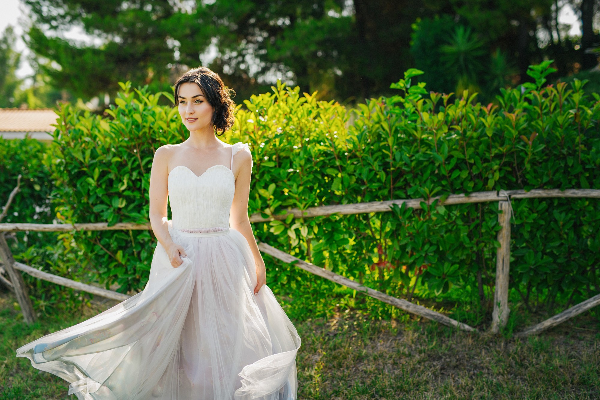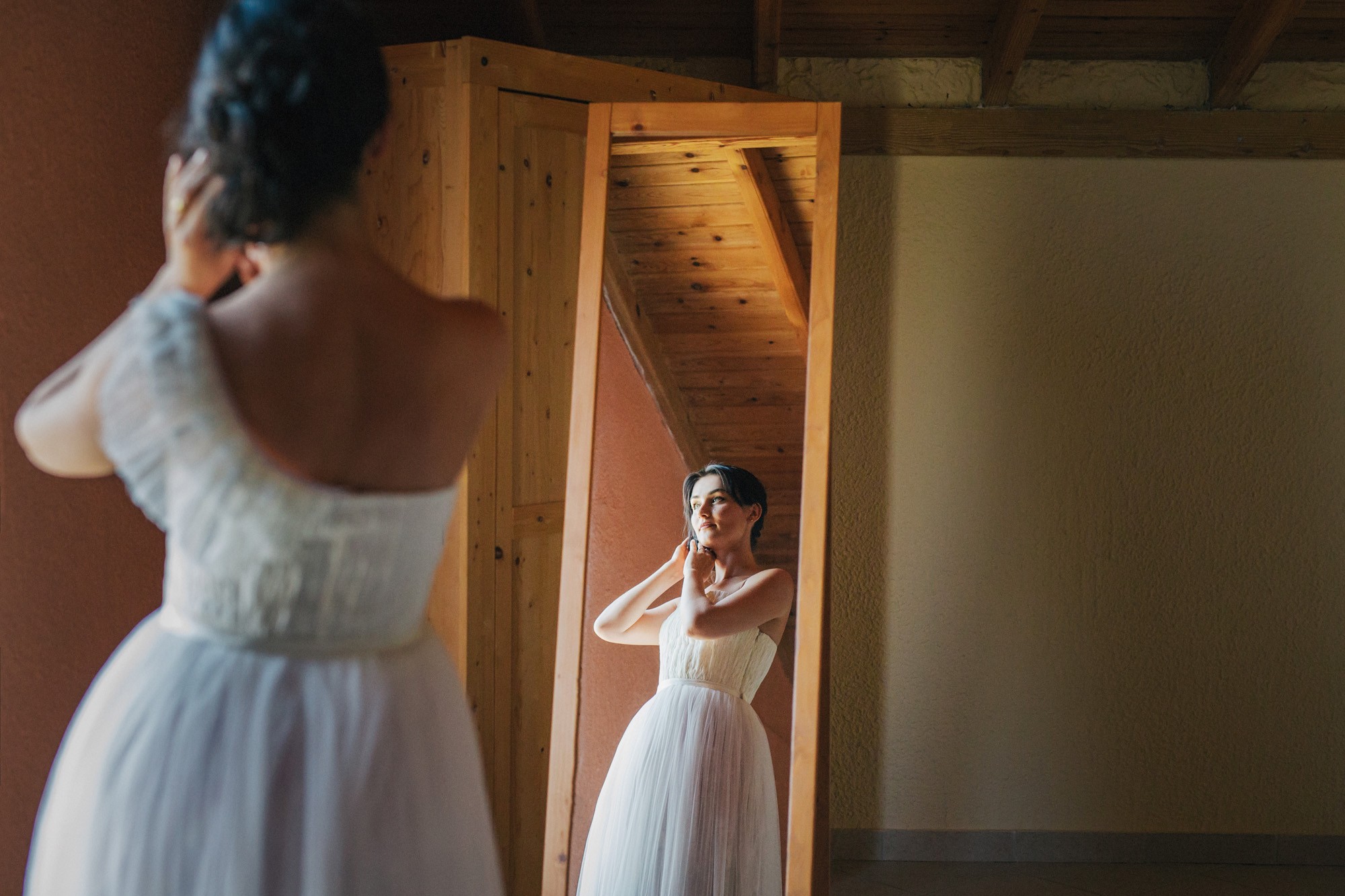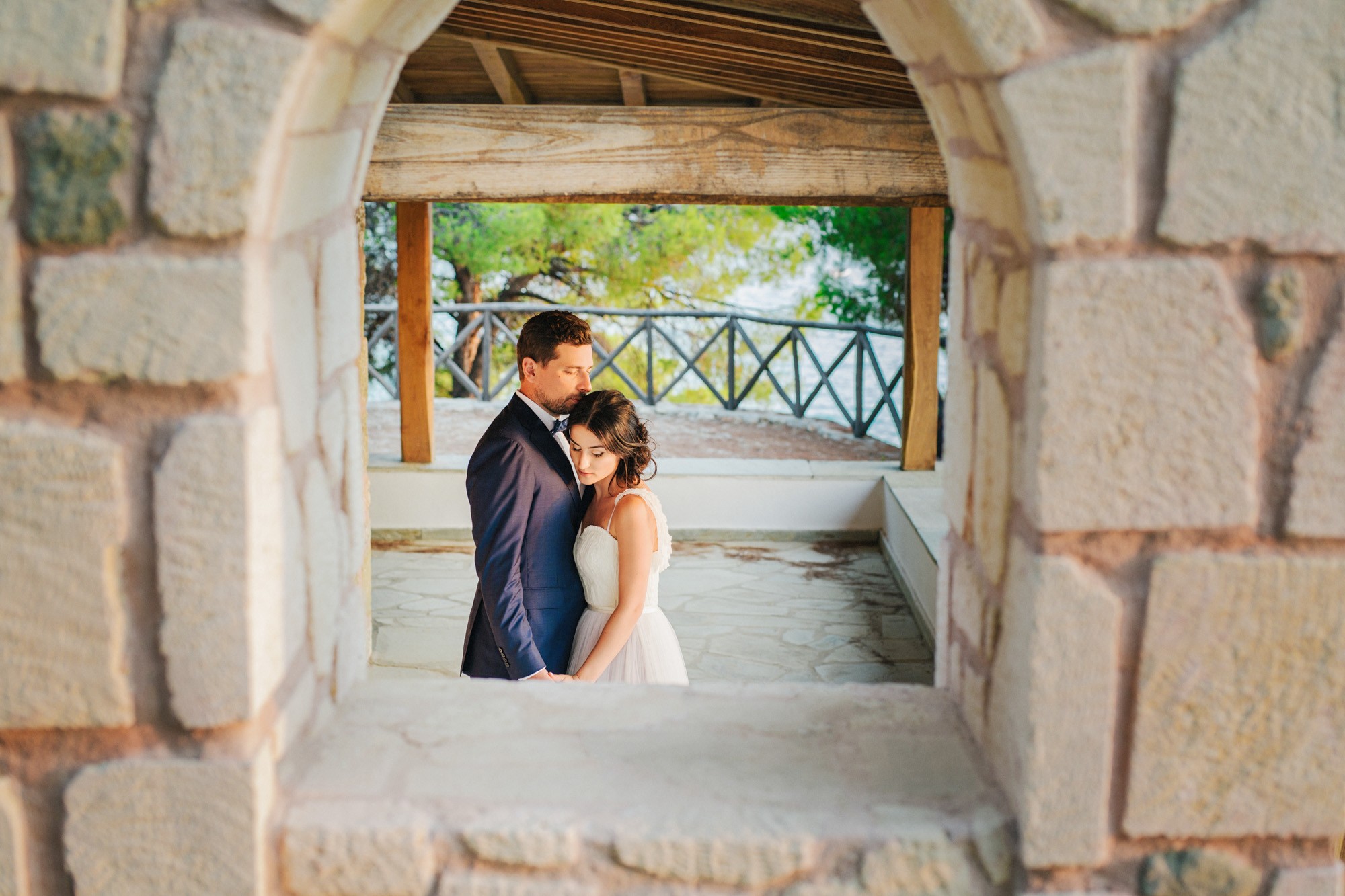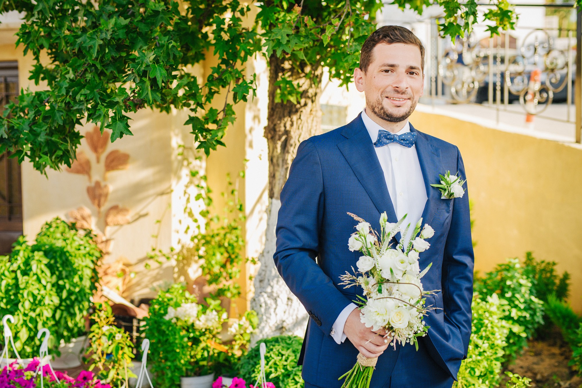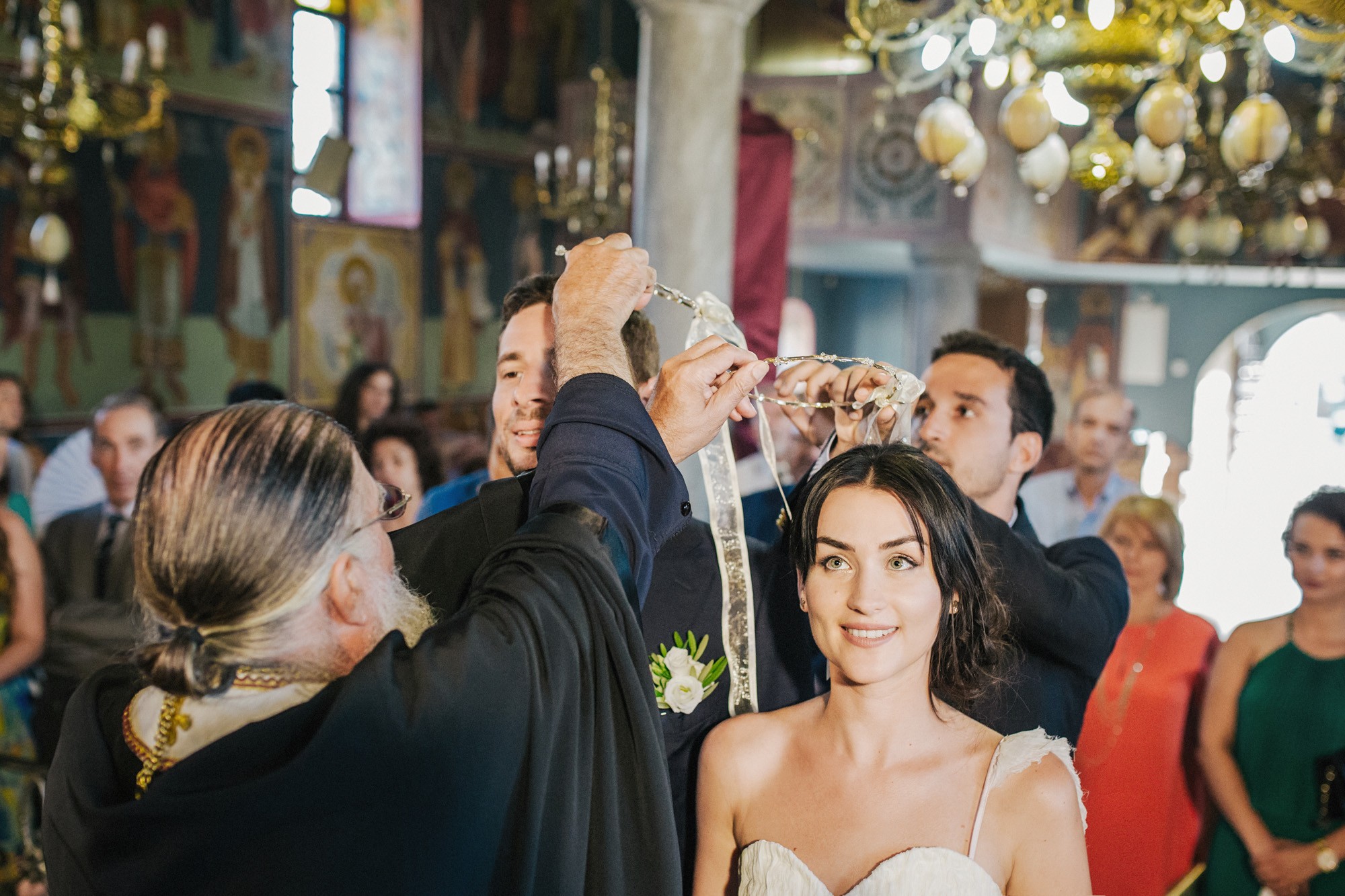 Η εκκλησία όπου επιτελέσθηκε το μυστήριο, βρισκόταν σε κάποιο κοντινό χωριό της περιοχής. Ο στολισμός κέρδισε τις καλύτερες εντυπώσεις, με τα λευκά τριαντάφυλλα να κυριαρχούν ανάμεσα σε άλλα ιδιαίτερα λουλούδια και την ανθισμένη πρασινάδα του προαύλιου χώρου να ξεπροβάλλει από κάθε γωνιά. Η πολυπόθητη στιγμή της συνάντησης του ζευγαριού έφτασε απελευθερώνοντας έντονα συναισθήματα και δίνοντάς μου τις προοπτικές για μια εκπληκτική φωτογράφιση γάμου.