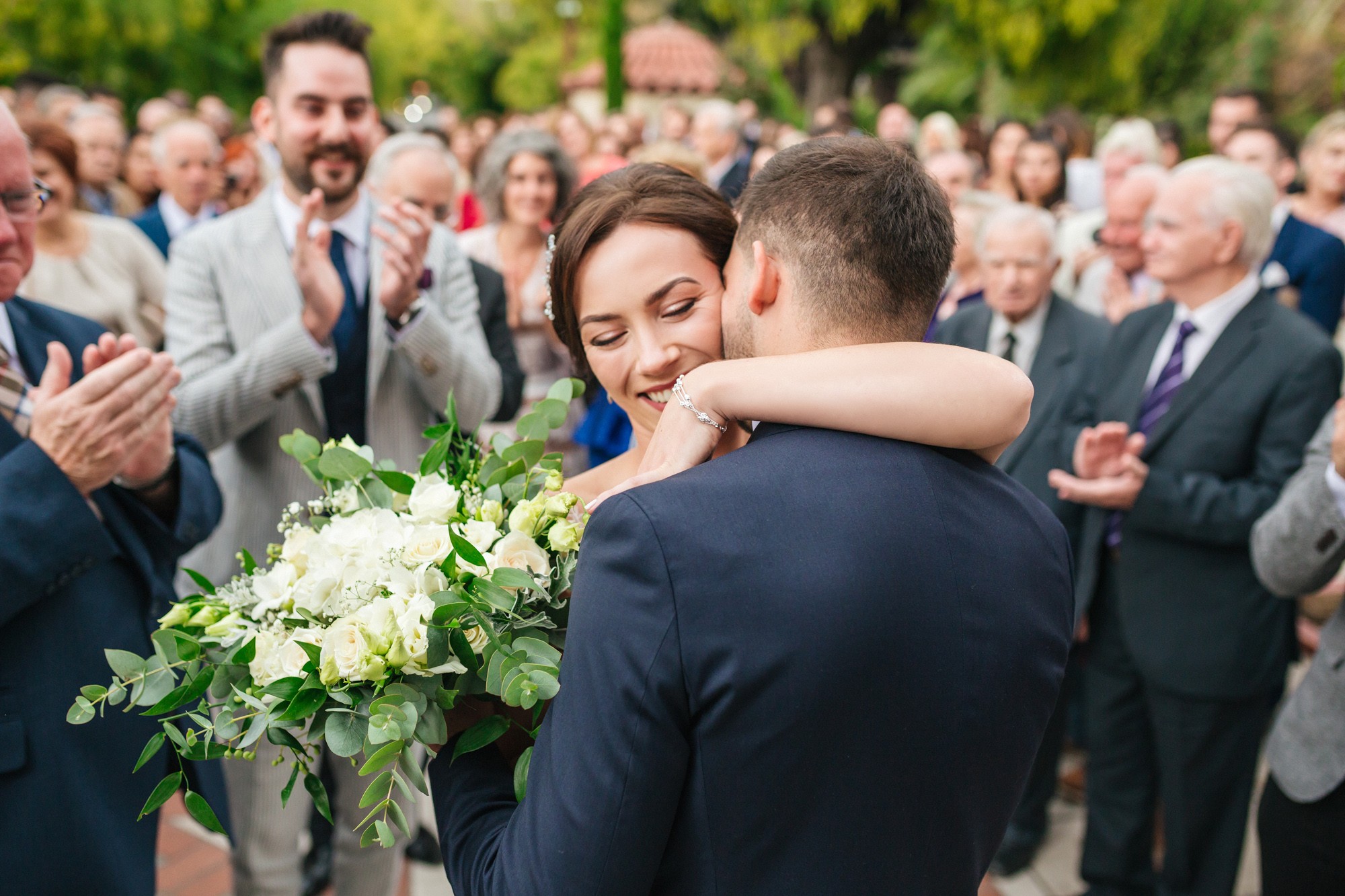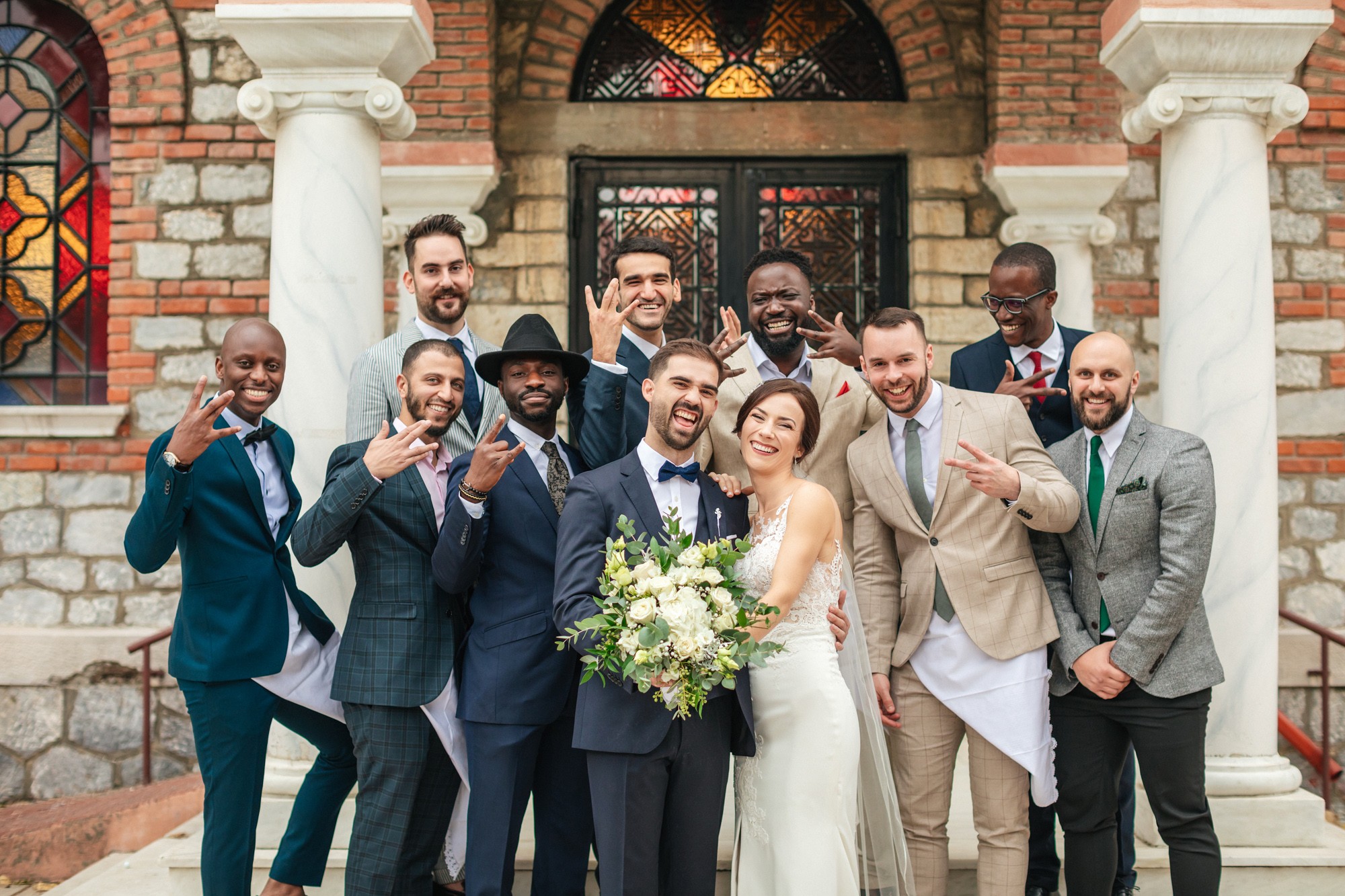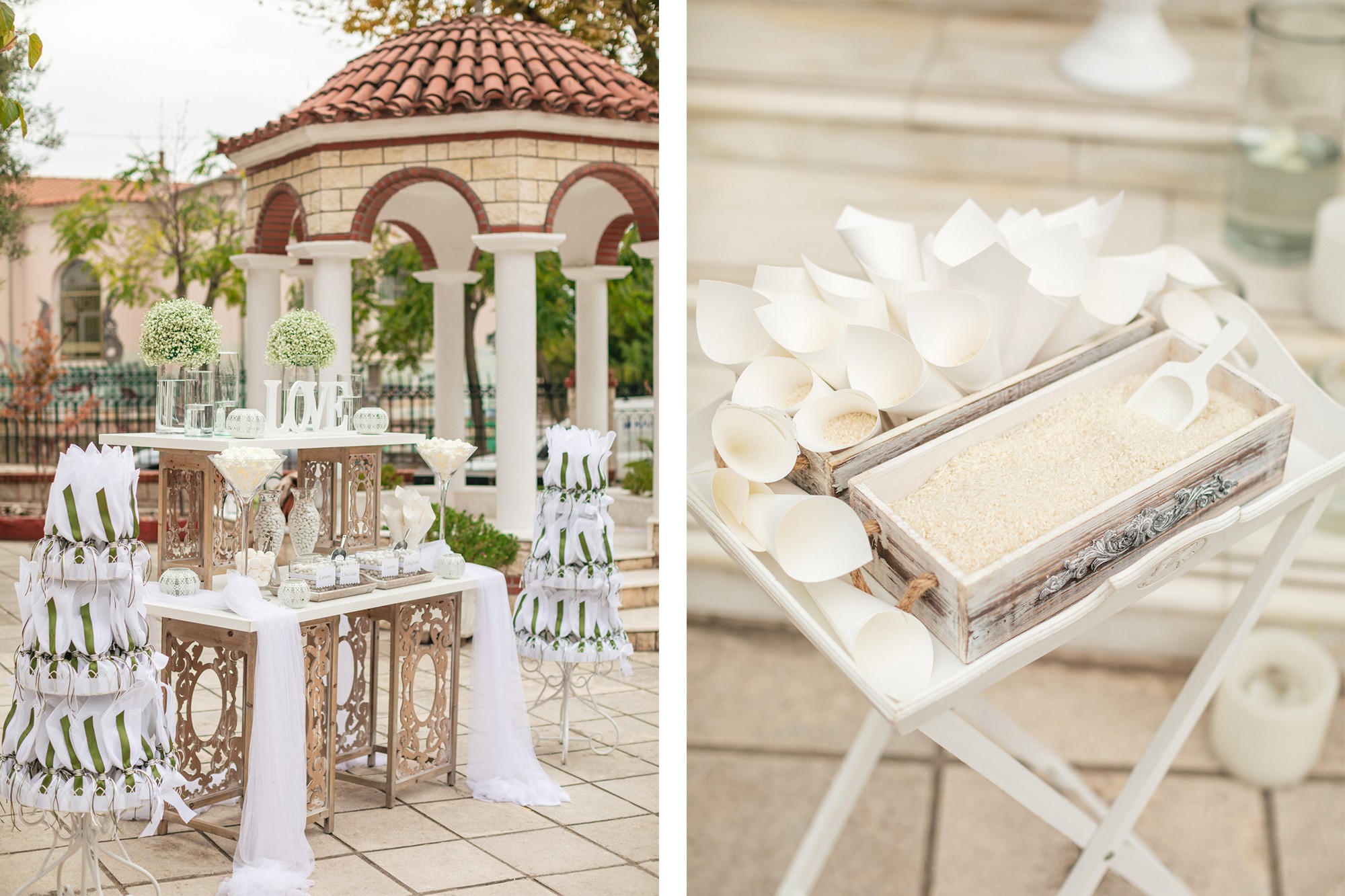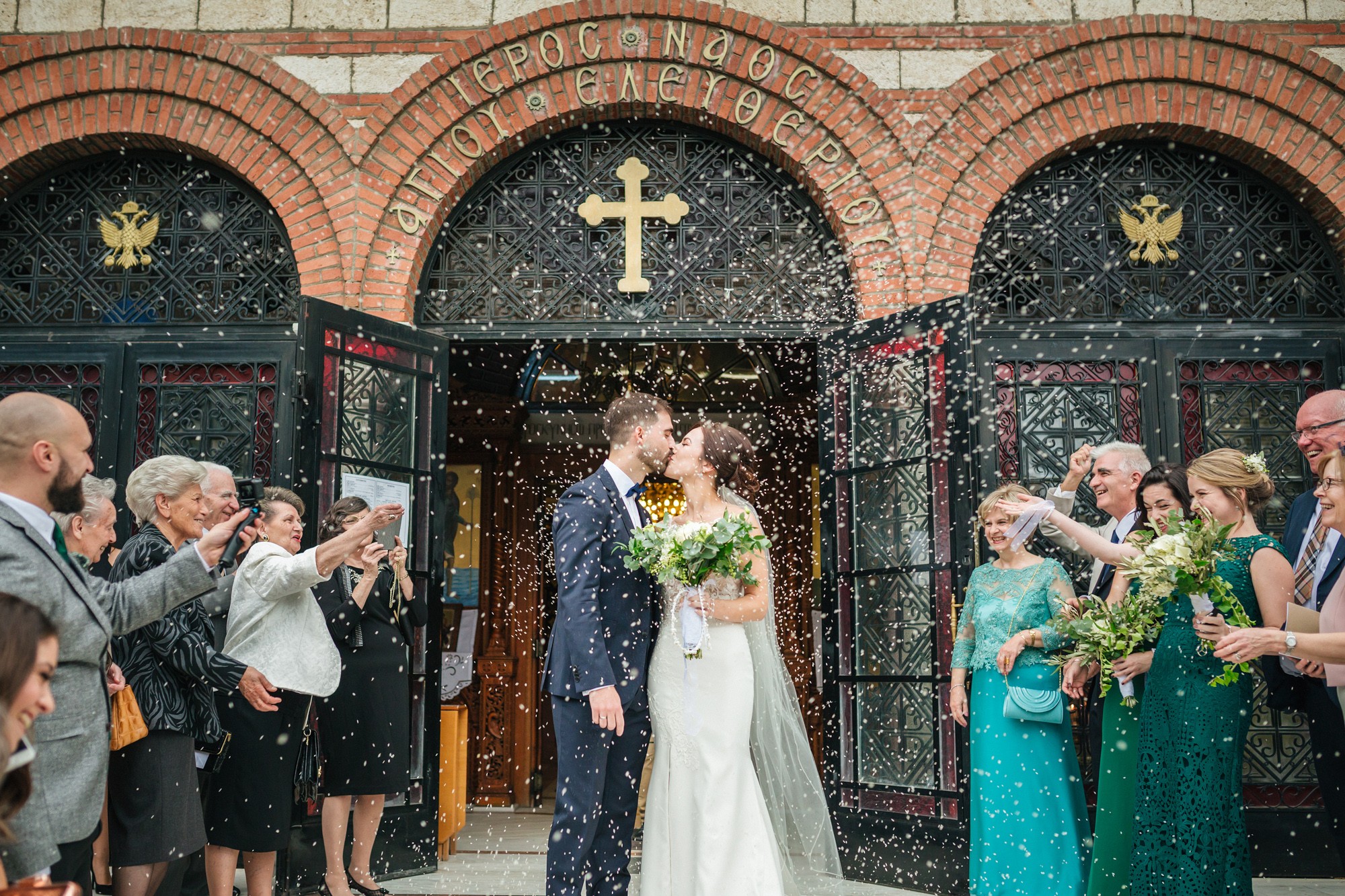 Παραδοσιακή, ζωντανή μουσική συνόδευσε τον γαμπρό στην εκκλησία. Θέαμα που ξεσήκωσε τους καλεσμένους χαρίζοντάς τους μεγάλα χαμόγελα. Οι φωτογραφίες του γάμου απέκτησαν το βαθύτερο νόημά τους με την συνάντηση του γαμπρού και της νύφης μπροστά από την πόρτα της εκκλησίας. Το μυστήριο ξεκίνησε και κύλησε με πολύ έντονο το στοιχείο του ρομαντισμού, το οποίο έγινε ακόμη εντονότερο όταν με την λήξη της τελετής, ο Μιχάλης και η Jane αντάλλαξαν όρκους ενώπιων του πάτερ και των καλεσμένων. Ήταν μια μοναδική στιγμή για τους δυο τους και αυτό φαίνεται έντονα στις φωτογραφίες του γάμου.