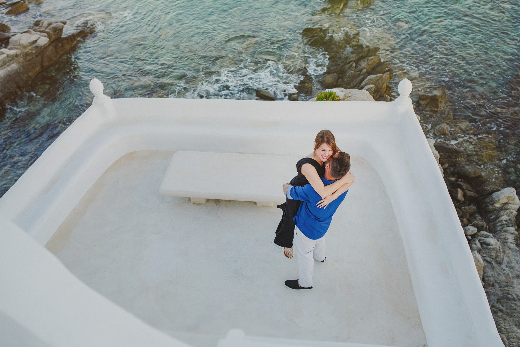 Ο εκπληκτικός σεφ και η εξαίρετη κονσιέρ, περιπλανήθηκαν μαζί μας στις μαγευτικές τοποθεσίες του νησιού, ανάμεσα σε λευκά σπίτια και εκκλησίες, πάνω σε βραχώδεις παραλίες και δίπλα από την κρυστάλλινη θάλασσα. Οι περίπατοί μας, μας χαλάρωσαν και η έμπνευσή μας οξύνθηκε ωθώντας μας στην δημιουργία μιας μοναδικής φωτογράφισης. Ο έρωτας του ζευγαριού, αποτυπωμένος σε κάθε εικόνα μας, προσέδωσε ένταση και ζωντάνια στη pre-wedding φωτογράφιση.