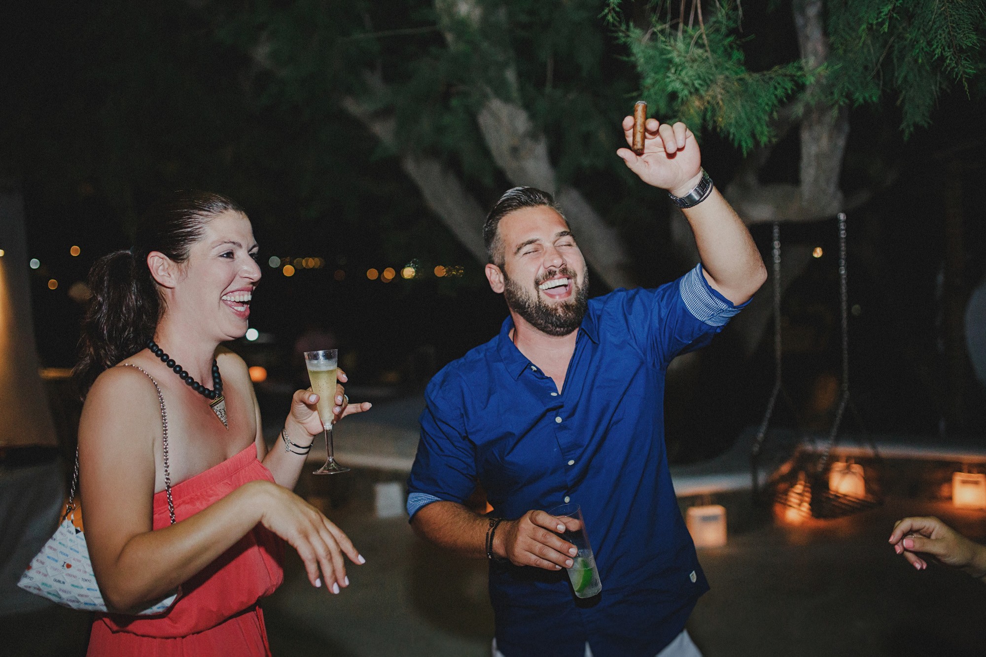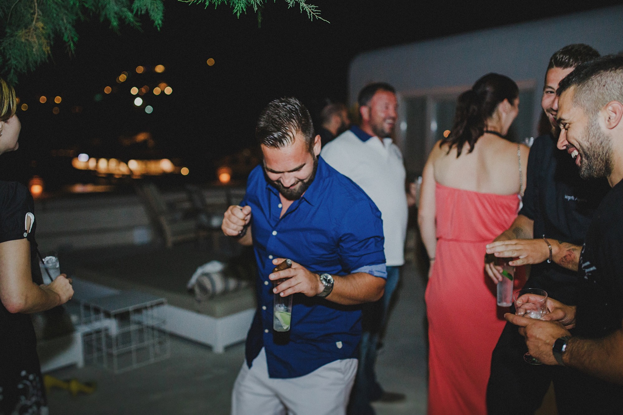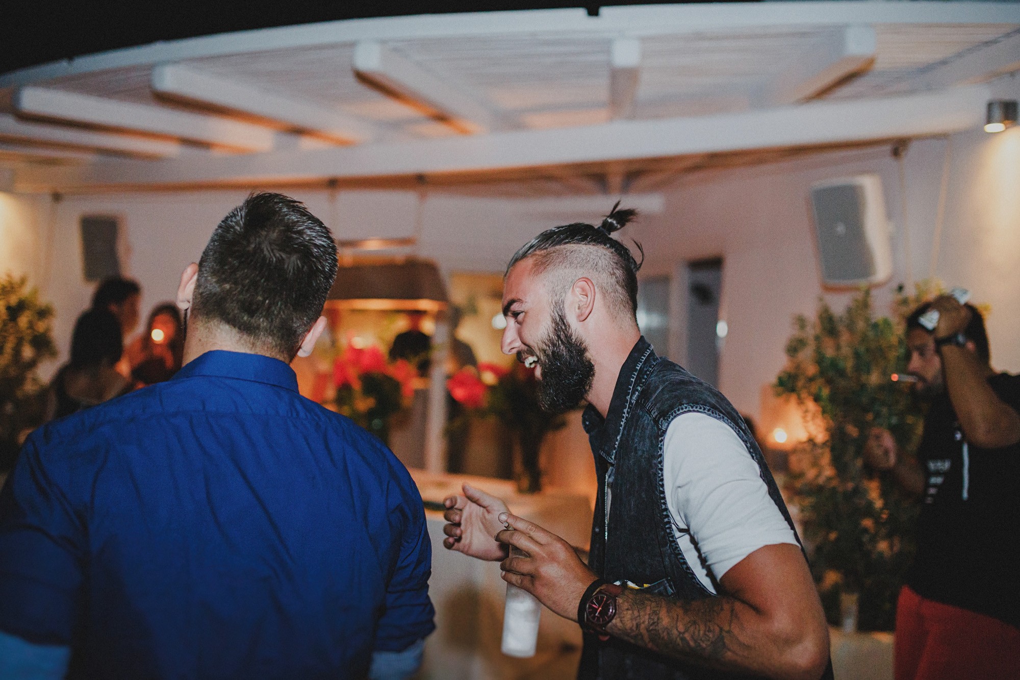 Το βράδυ, μας βρήκε σε μία από τις Mykonos Luxury Villas, στην οποία το ζευγάρι πραγματοποίησε το pre-wedding party. Ανεξάντλητος χορός και απίθανα κοκτέιλ συνόδεψαν την βραδιά μας, με την διασκέδαση να χτυπάει κόκκινο, κάτω από τον καλοκαιρινό νυχτερινό ουρανό του Αιγαίου.