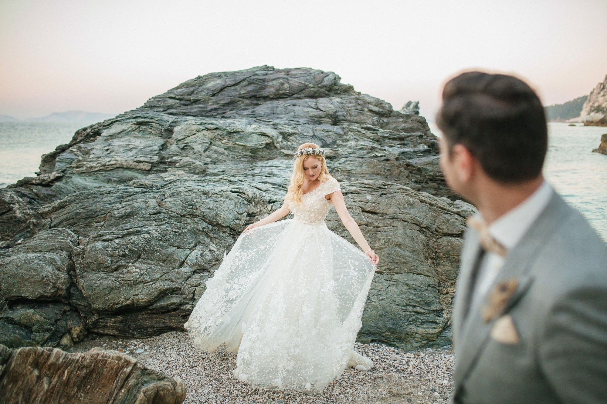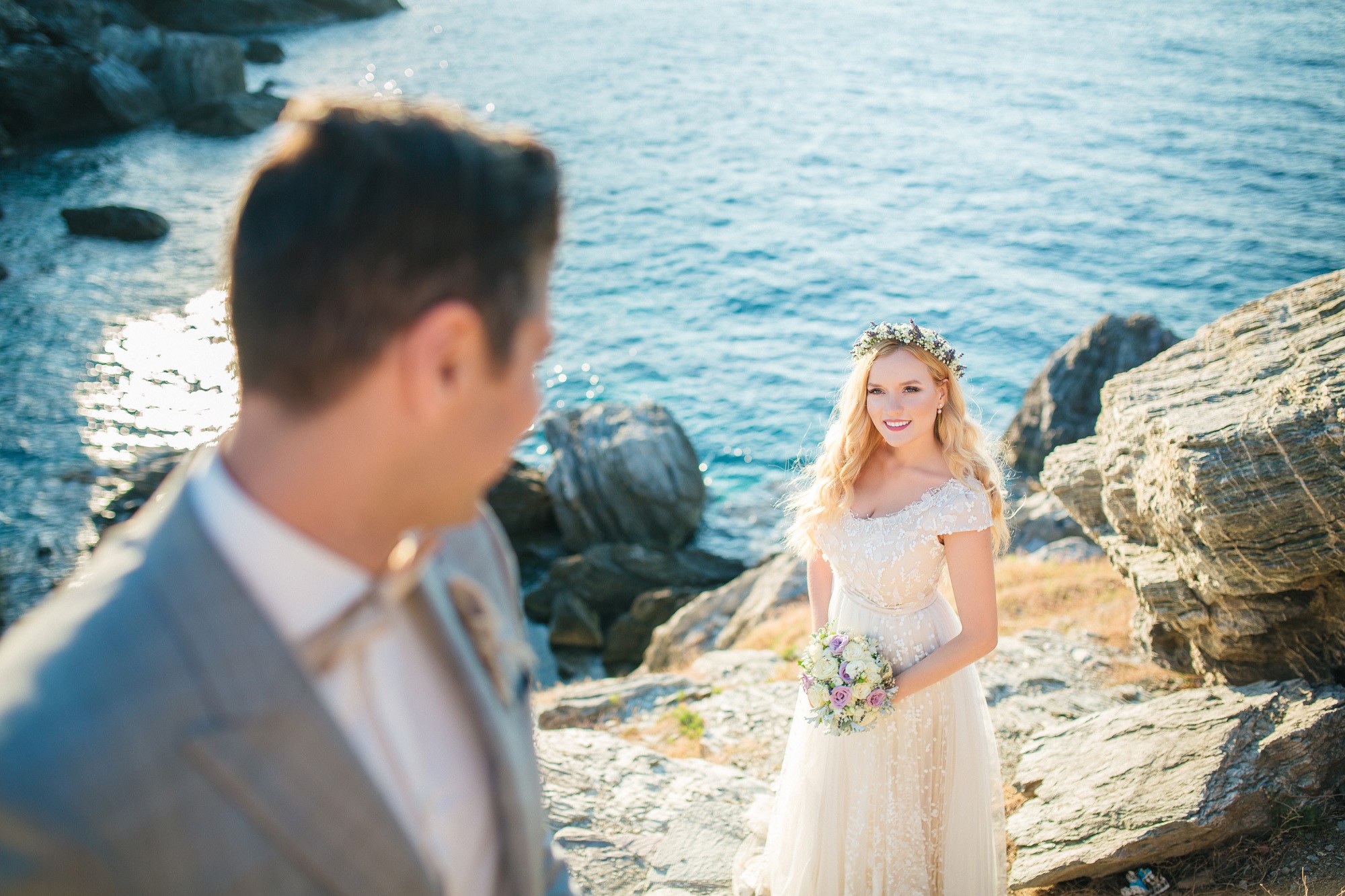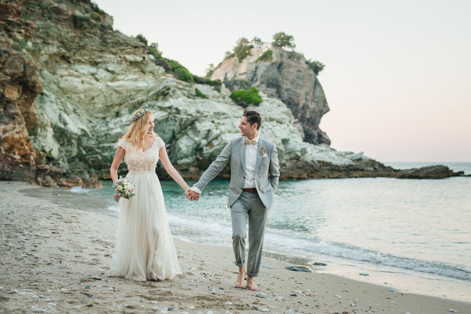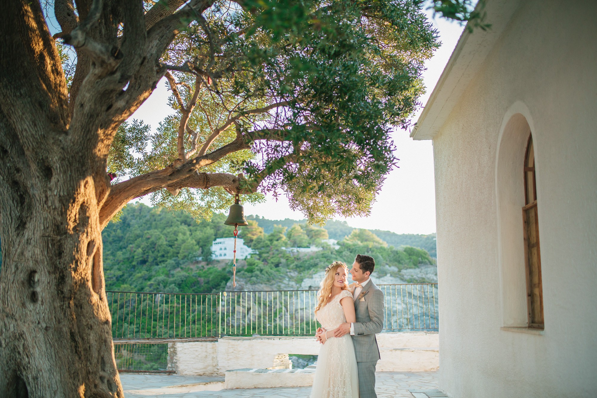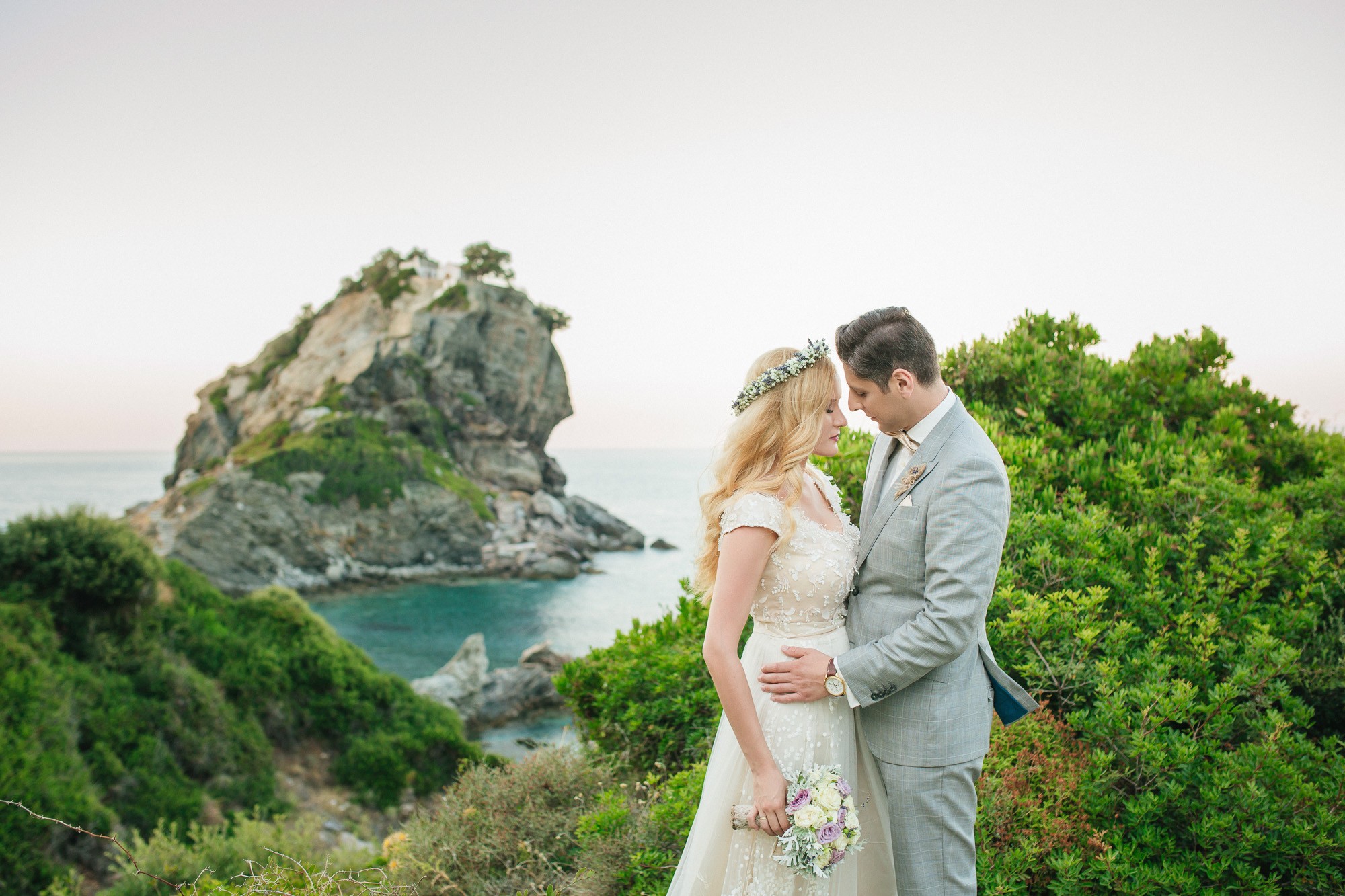 Η Σκόπελος, που είναι φυσικά πολύ δημοφιλής καθώς η ταινία Mama Mia γυρίστηκε στο νησί, έχει τόσα πολλά να δώσει σε όσους την επισκεφτούν. Η φωτογράφιση μας περιλαμβάνει πανέμορφα τοπία και μαγευτικές ακρογιαλιές που συνθέτουν το πιο εντυπωσιακό φόντο για ένα ζευγάρι λαμπερό και ερωτευμένο όπως η Μαρίνα και ο Στράτος. Η καλοκαιρινή ατμόσφαιρα του νησιού και η ανεμελιά που αυτή προσφέρει, ενίσχυσε θετικά την ψυχολογία του ζευγαριού, που αφέθηκε και απόλαυσε την φωτογράφισή του γάμου του αποκαλύπτοντάς μου την πιο όμορφη πλευρά του.