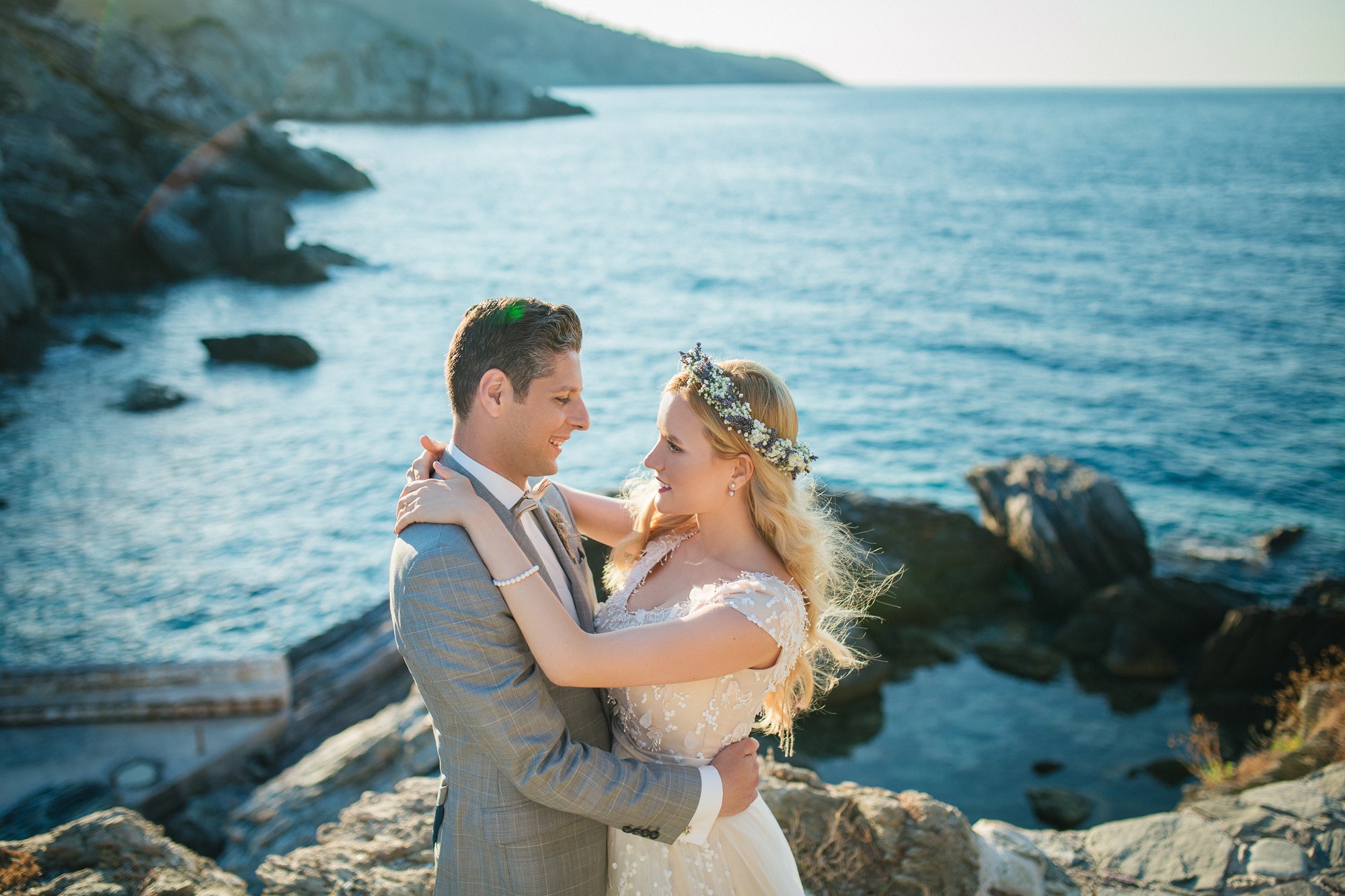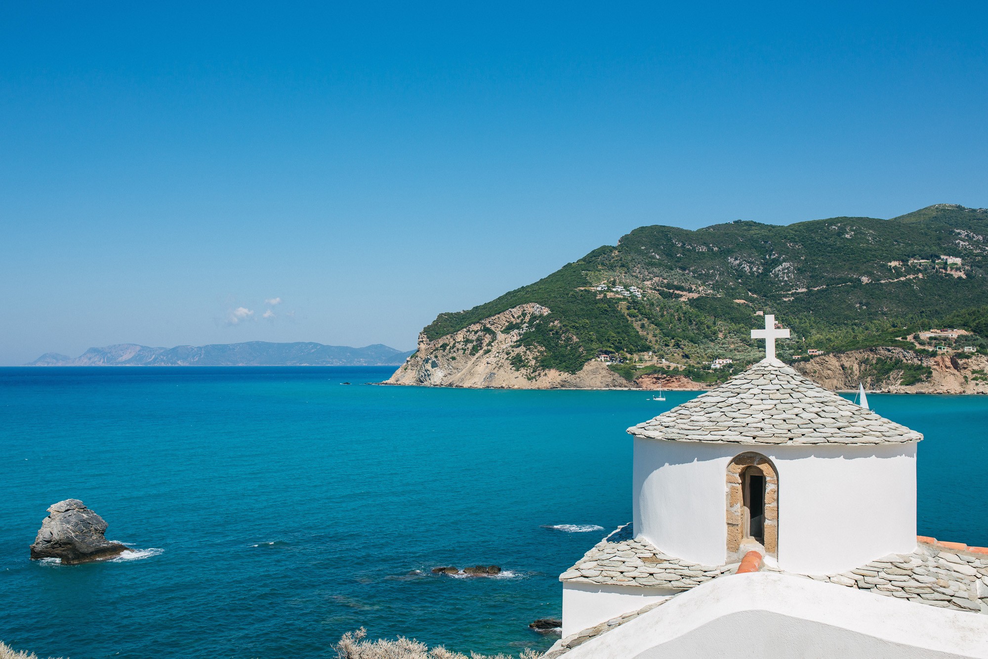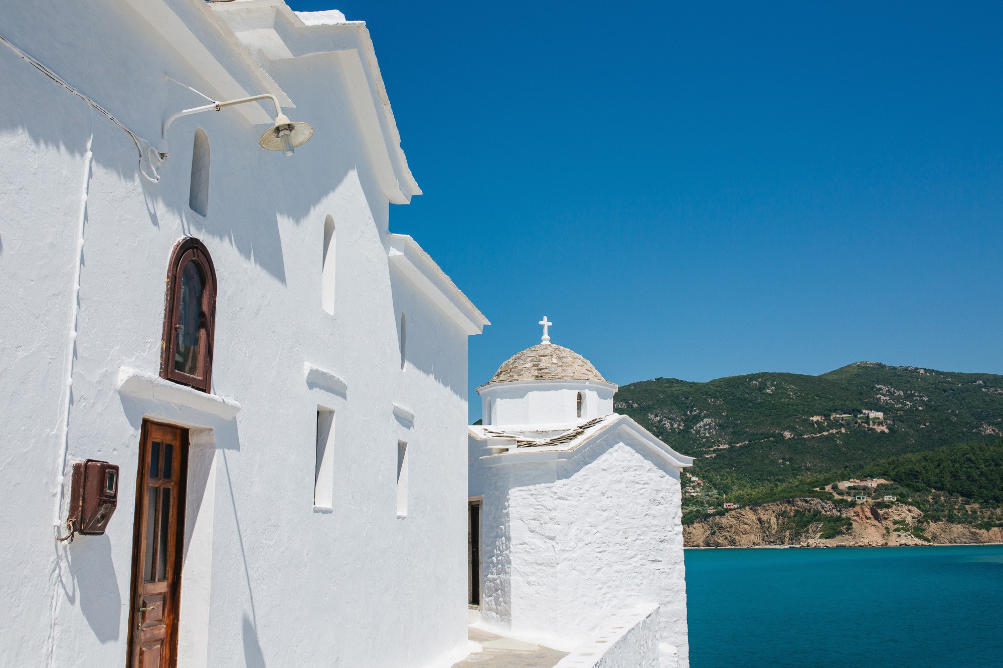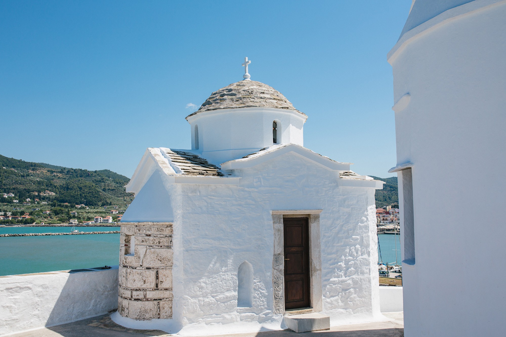 Η Σκόπελος, που είναι φυσικά πολύ δημοφιλής καθώς η ταινία Mama Mia γυρίστηκε στο νησί, έχει τόσα πολλά να δώσει σε όσους την επισκεφτούν. Η φωτογράφιση μας περιλαμβάνει πανέμορφα τοπία και μαγευτικές ακρογιαλιές που συνθέτουν το πιο εντυπωσιακό φόντο για ένα ζευγάρι λαμπερό και ερωτευμένο όπως η Μαρίνα και ο Στράτος. Η καλοκαιρινή ατμόσφαιρα του νησιού και η ανεμελιά που αυτή προσφέρει, ενίσχυσε θετικά την ψυχολογία του ζευγαριού, που αφέθηκε και απόλαυσε την φωτογράφισή του γάμου του αποκαλύπτοντάς μου την πιο όμορφη πλευρά του.