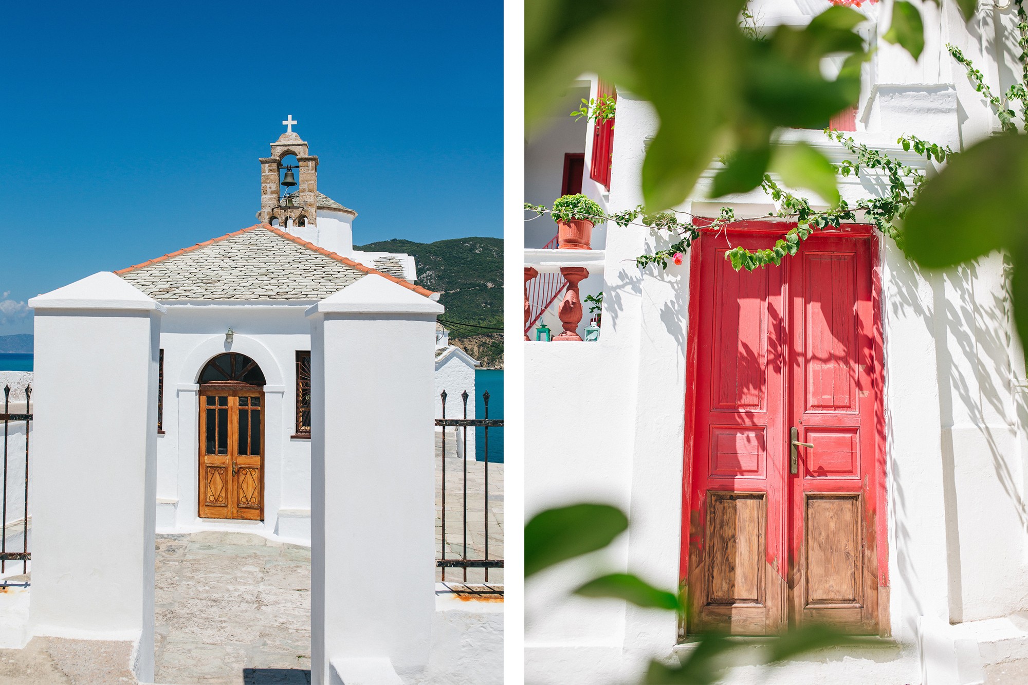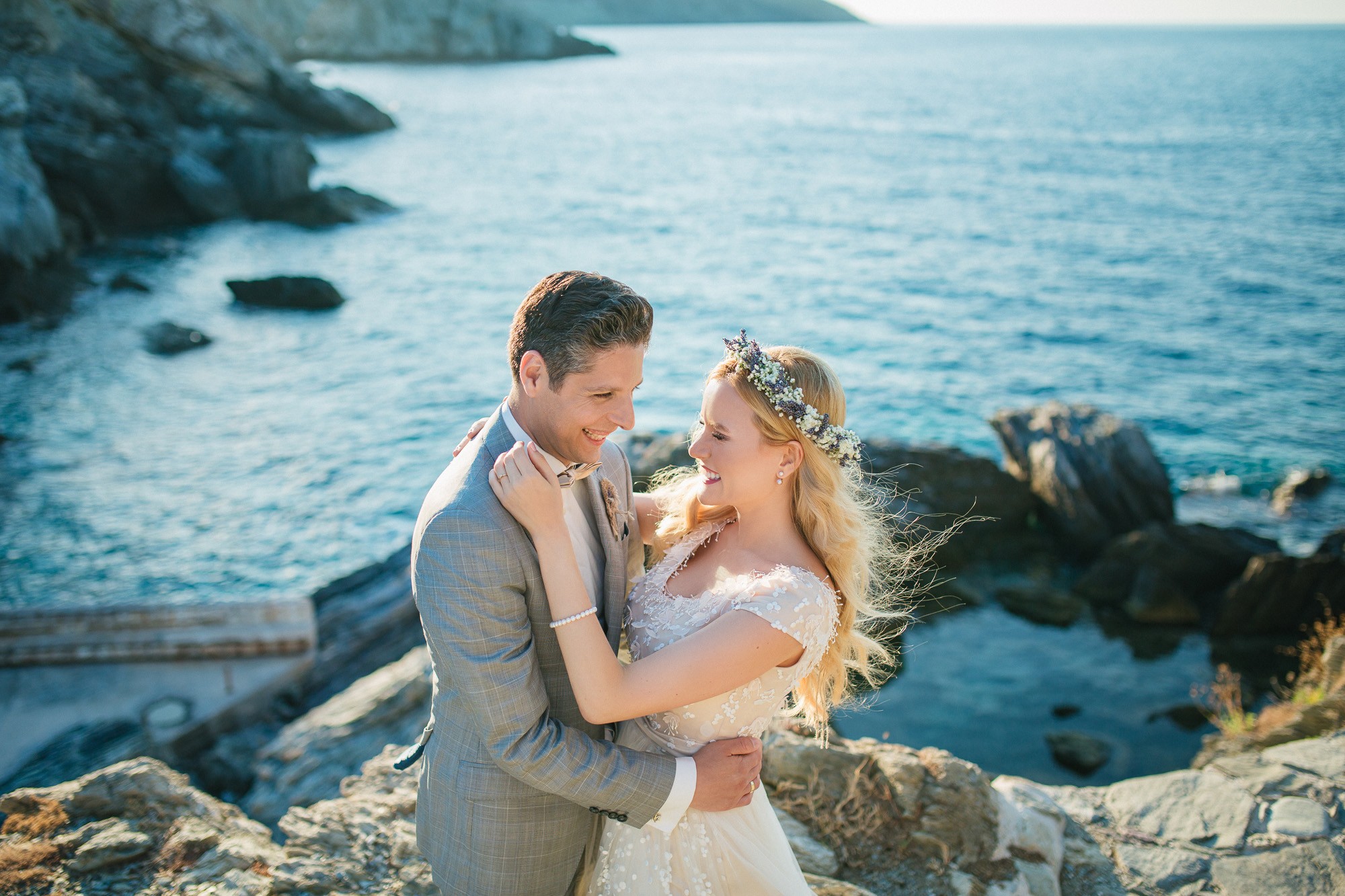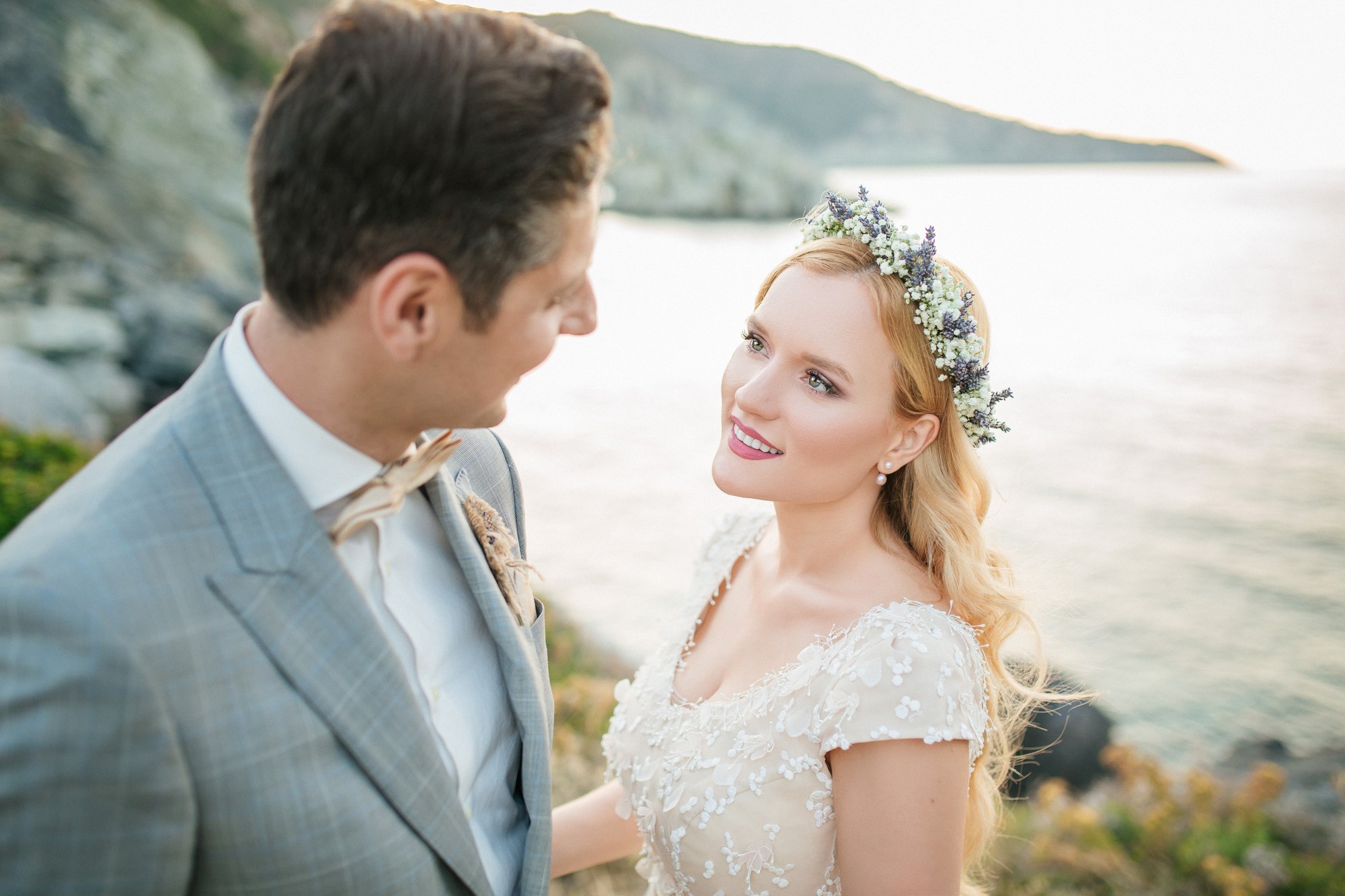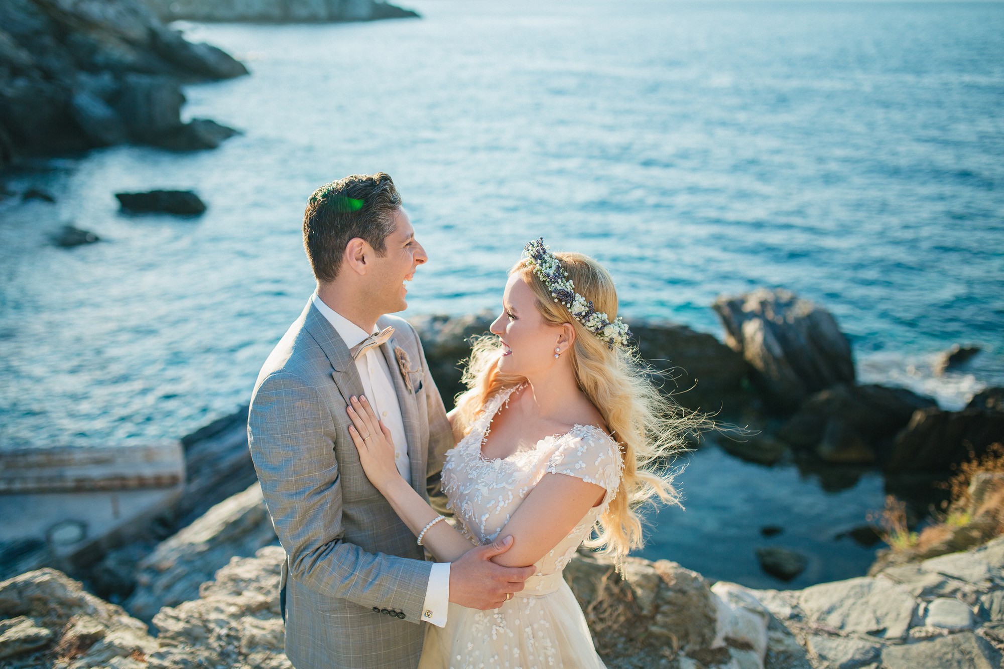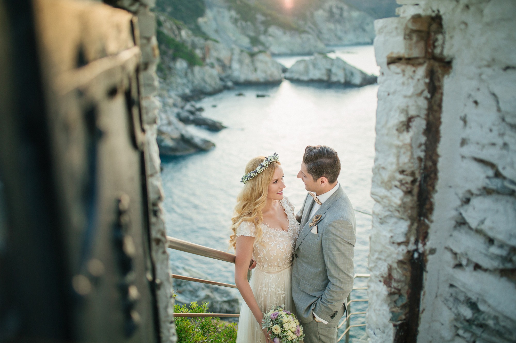 Η Σκόπελος, που είναι φυσικά πολύ δημοφιλής καθώς η ταινία Mama Mia γυρίστηκε στο νησί, έχει τόσα πολλά να δώσει σε όσους την επισκεφτούν. Η φωτογράφιση μας περιλαμβάνει πανέμορφα τοπία και μαγευτικές ακρογιαλιές που συνθέτουν το πιο εντυπωσιακό φόντο για ένα ζευγάρι λαμπερό και ερωτευμένο όπως η Μαρίνα και ο Στράτος. Η καλοκαιρινή ατμόσφαιρα του νησιού και η ανεμελιά που αυτή προσφέρει, ενίσχυσε θετικά την ψυχολογία του ζευγαριού, που αφέθηκε και απόλαυσε την φωτογράφισή του γάμου του αποκαλύπτοντάς μου την πιο όμορφη πλευρά του.