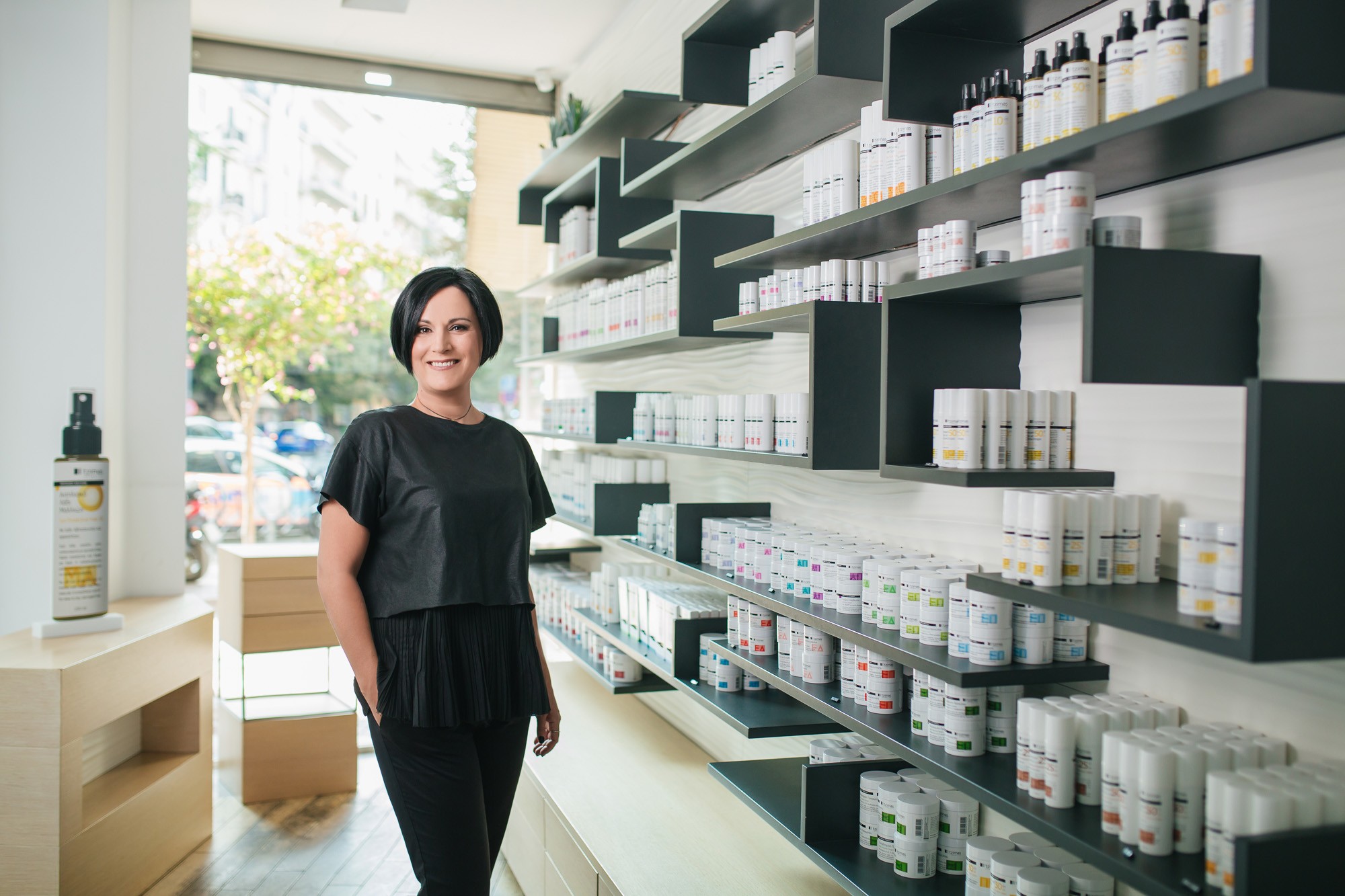 Lila Tzima owns the Cosmetology Centre Tzimas Cosmetics, which she runs together with her brother, George Tzimas. The two siblings founded the company in 2000, which is now based in the center of Thessaloniki. The center undertakes the research, production and distribution of beauty products for facial, body and hair care. Tzimas Cosmetics is a prominent company as it produces cosmetic products bearing a greek signature. Lila and her brother studied Chemistry and attended postgraduate programs that further enriched their knowledge and perception of cosmetology. The company aims at constantly evolving and satisfying all the demands of its clients regarding the care of a woman's face and body. Lila Tzima is photographed by displaying her professional profile for GLOW Magazine, in collaboration with photographer Hector Nikolakis. The company details and much more information about her and the Tzimas family can be found on the TZIMAS COSMETICS website.