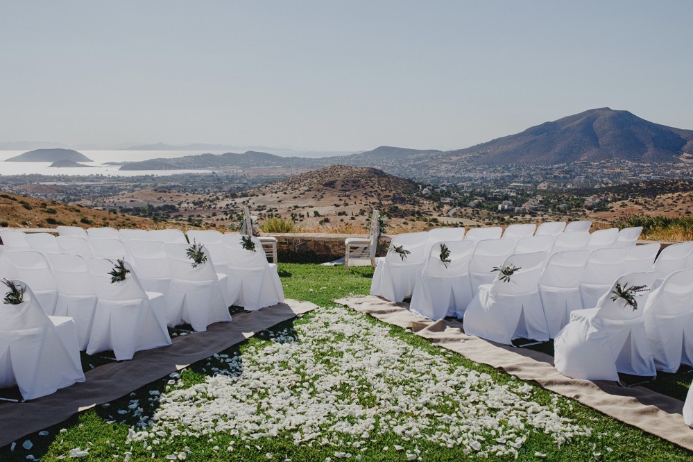 Whenever I think of Sounio, Athens, two things spring to mind: The temple of Poseidon and the summer wedding of Mary and Jan Wicher. The couple met in Amsterdam and now live in Notting Hill, London. They chose to tie the knot in Chatzis Estate, as they fell in love with the breath-taking combination between mountain and sea which the area offers. This was an excellent decision, as the venue is famed for its views over the Aegean Sea and remains a popular choice for local and foreign couples alike.